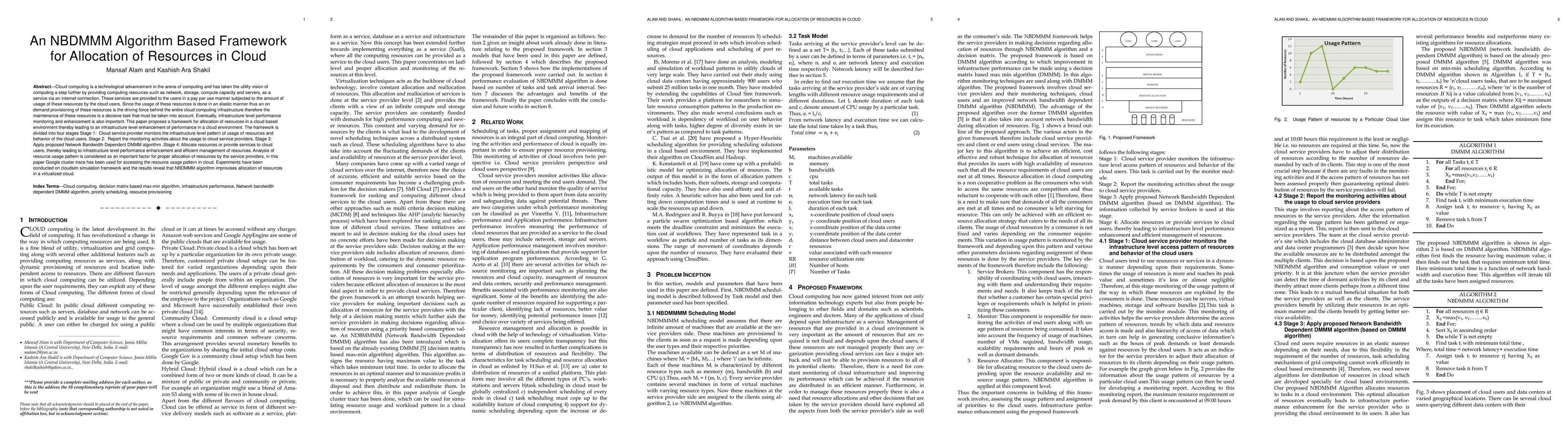 This paper proposes a framework for efficient resource allocation in cloud computing using a four-stage process, culminating in the application of a Network Bandwidth Dependent DMMM algorithm to enhance infrastructure performance. Experiments on CloudSim show that the NBDMMM algorithm improves resource allocation efficiency.