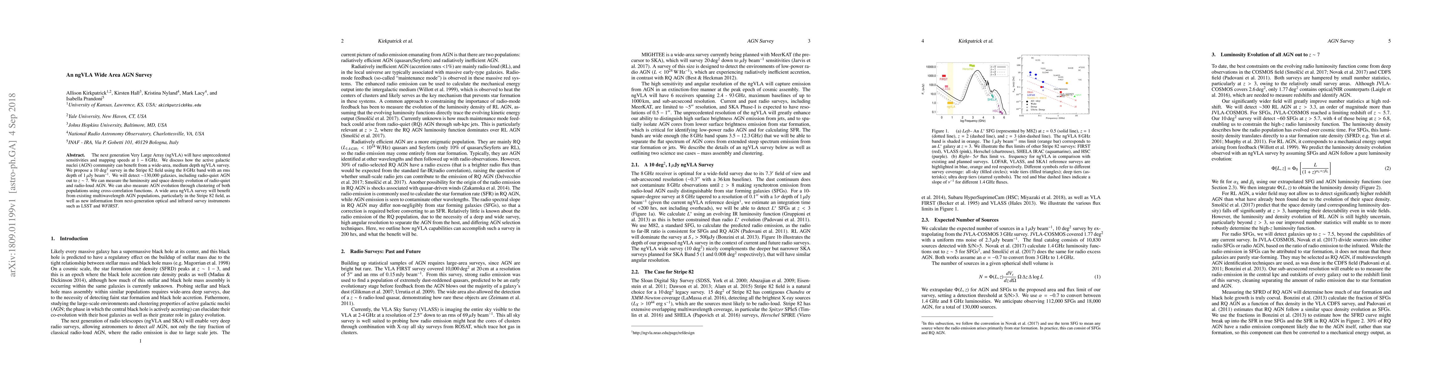 The next generation Very Large Array (ngVLA) will have unprecedented sensitivities and mapping speeds at $1-8$ GHz. We discuss how the active galactic nuclei (AGN) community can benefit from a wide-area, medium depth ngVLA survey. We propose a 10 deg$^2$ survey in the Stripe 82 field using the 8 GHz band with an rms depth of $1\,\mu$Jy beam$^{-1}$. We will detect $\sim$130,000 galaxies, including radio-quiet AGN out to $z\sim7$. We can measure the luminosity and space density evolution of radio-quiet and radio-loud AGN. We can also measure AGN evolution through clustering of both populations using cross-correlation functions. A wide area ngVLA survey will benefit from existing multiwavelength AGN populations, particularly in the Stripe 82 field, as well as new information from next-generation optical and infrared survey instruments such as LSST and WFIRST.