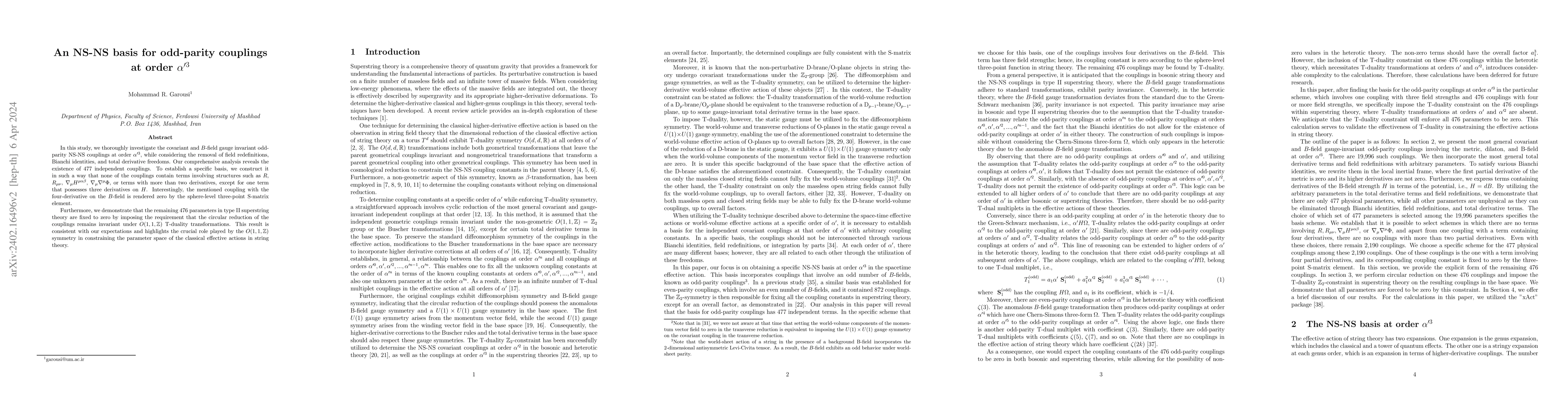 The paper presents a comprehensive analysis of odd-parity NS-NS couplings at order $\alpha'^3$, identifying a basis with 477 independent couplings and demonstrating how T-duality constraints fix 476 of these parameters to zero.