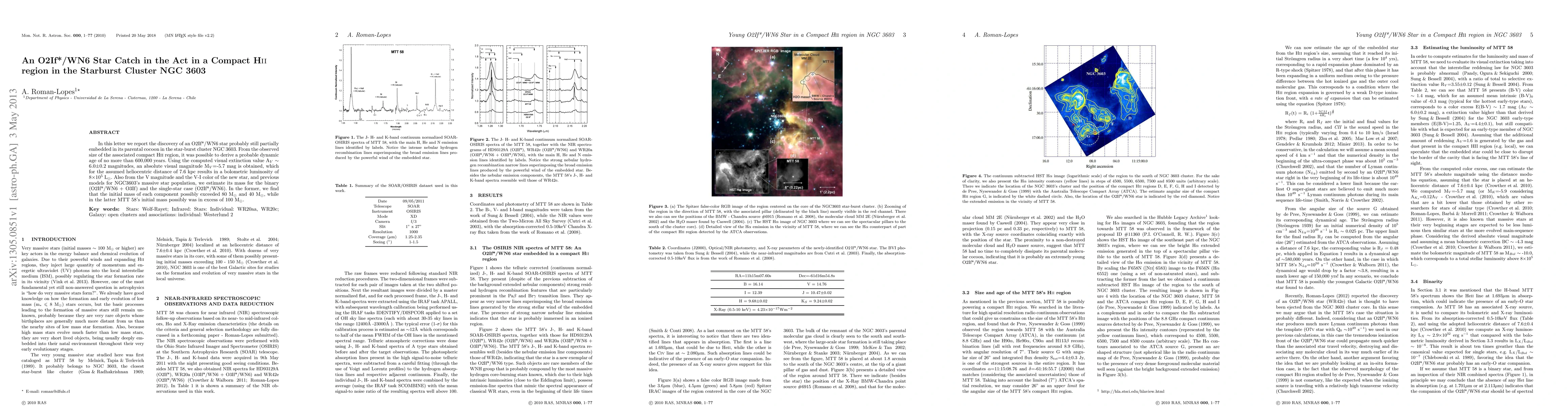 In this paper I report the discovery of an O2If*/WN6 star probably still partially embedded in its parental cocoon in the star-burst cluster NGC 3603. From the observed size of the associated compact Hii region, it was possible to derive a probable dynamic age of no more than 600,000 years. Using the computed visual extinction value Av ~ 6 magnitudes, an absolute visual magnitude Mv =-5.7 mag is obtained, which for the assumed heliocentric distance of 7.6 kpc results in a bolometric luminosity of ~ 8x10^5 Lsun. Also from the V magnitude and the V-I color of the new star, and previous models for NGC3603's massive star population, we estimate its mass for the binary (O2If*/WN6 + O3If) and the single-star case (O2If*/WN6). In the former, it was found that the initial mass of each component possibly exceeded 80 Msun and 40 Msun, while in the latter MTT 58's initial mass possibly was in excess of 100 Msun.