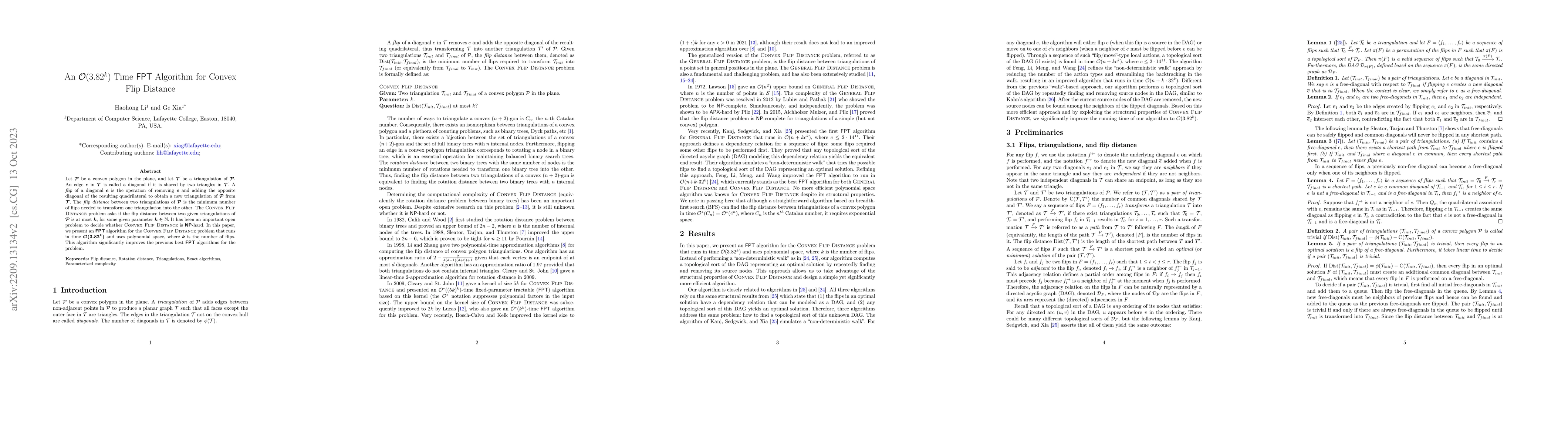 This paper presents an FPT algorithm for the Convex Flip Distance problem, achieving a runtime of $O(3.82^k)$ for $k$ flips, significantly improving previous algorithms. The algorithm operates on triangulations of convex polygons and determines the minimum number of diagonal flips required to transform one triangulation into another.
