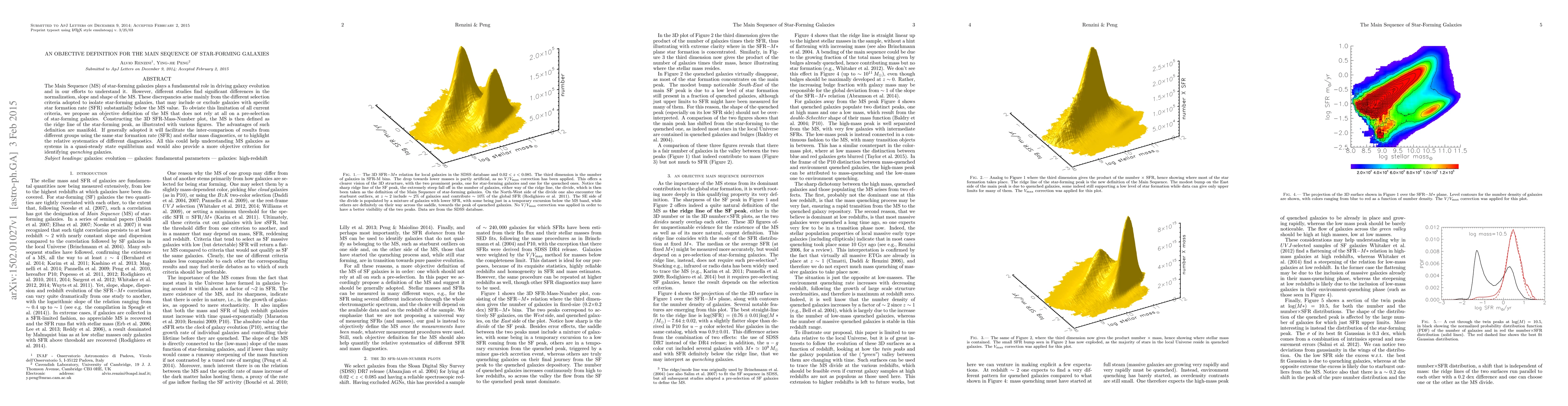 This paper proposes an objective definition for the Main Sequence of star-forming galaxies, defining it as the ridge line of the star-forming peak in a 3D SFR-Mass-Number plot, without pre-selection criteria. This approach aims to standardize comparisons across studies and improve understanding of galaxy evolution and quenching.