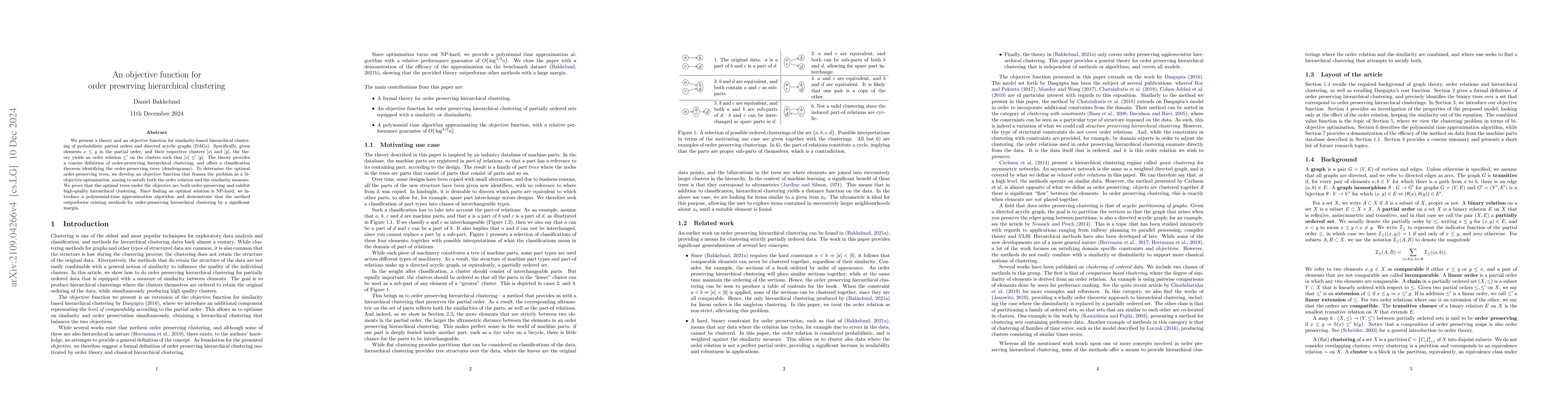 This paper introduces an objective function for hierarchical clustering that preserves the partial order of data, combining order and similarity into a bi-objective optimization problem. The authors provide a polynomial time approximation algorithm with a performance guarantee, demonstrating its effectiveness on benchmark datasets.