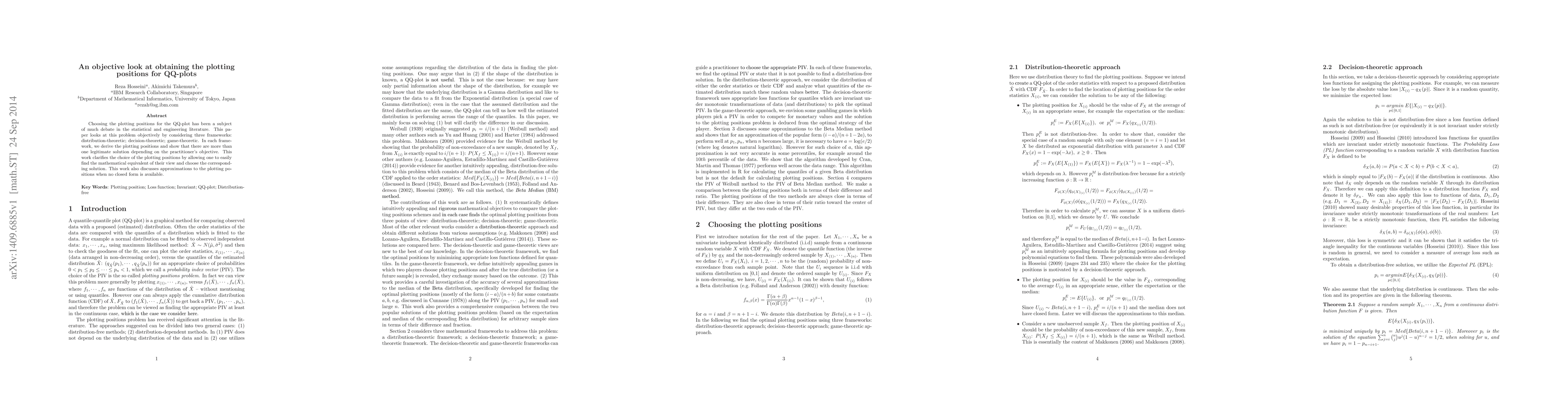 This paper objectively examines the selection of plotting positions for QQ-plots through three frameworks: distribution-theoretic, decision-theoretic, and game-theoretic, revealing multiple legitimate solutions based on the practitioner's objectives and discussing approximations when no closed form exists.