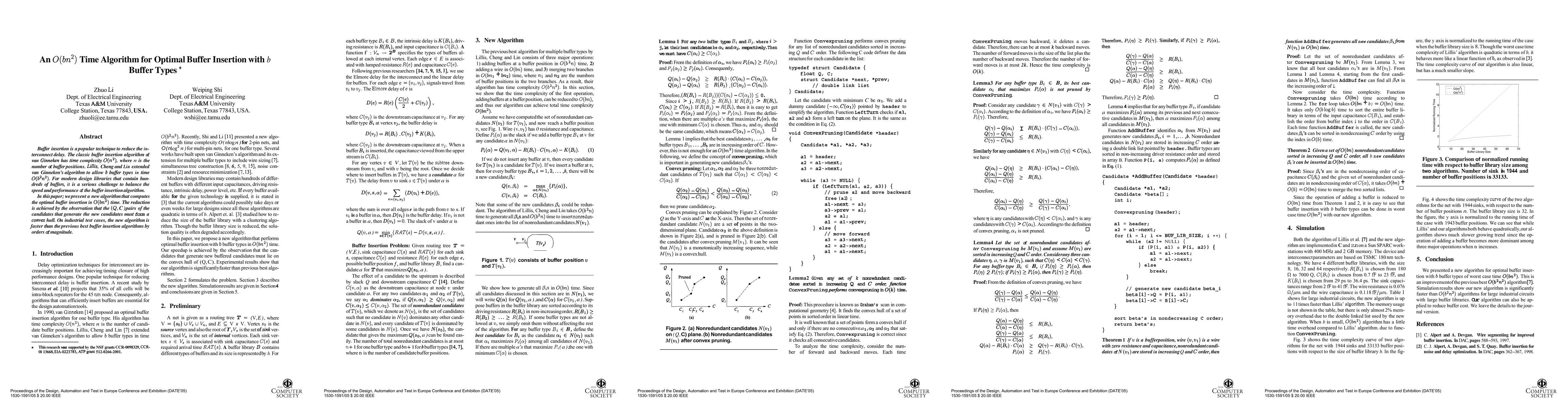 Buffer insertion is a popular technique to reduce the interconnect delay. The classic buffer insertion algorithm of van Ginneken has time complexity O(n^2), where n is the number of buffer positions. Lillis, Cheng and Lin extended van Ginneken's algorithm to allow b buffer types in time O (b^2 n^2). For modern design libraries that contain hundreds of buffers, it is a serious challenge to balance the speed and performance of the buffer insertion algorithm. In this paper, we present a new algorithm that computes the optimal buffer insertion in O (bn^2) time. The reduction is achieved by the observation that the (Q, C) pairs of the candidates that generate the new candidates must form a convex hull. On industrial test cases, the new algorithm is faster than the previous best buffer insertion algorithms by orders of magnitude.