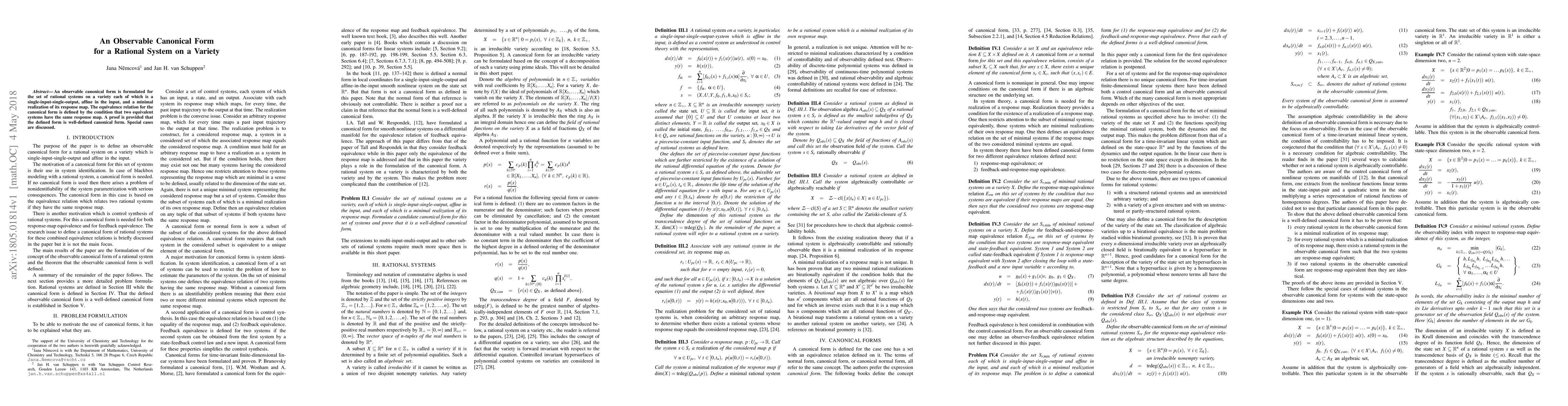 This paper formulates an observable canonical form for rational systems on a variety, ensuring minimal realization and equivalence based on the same response map. The paper proves the well-defined nature of this canonical form and explores special cases.