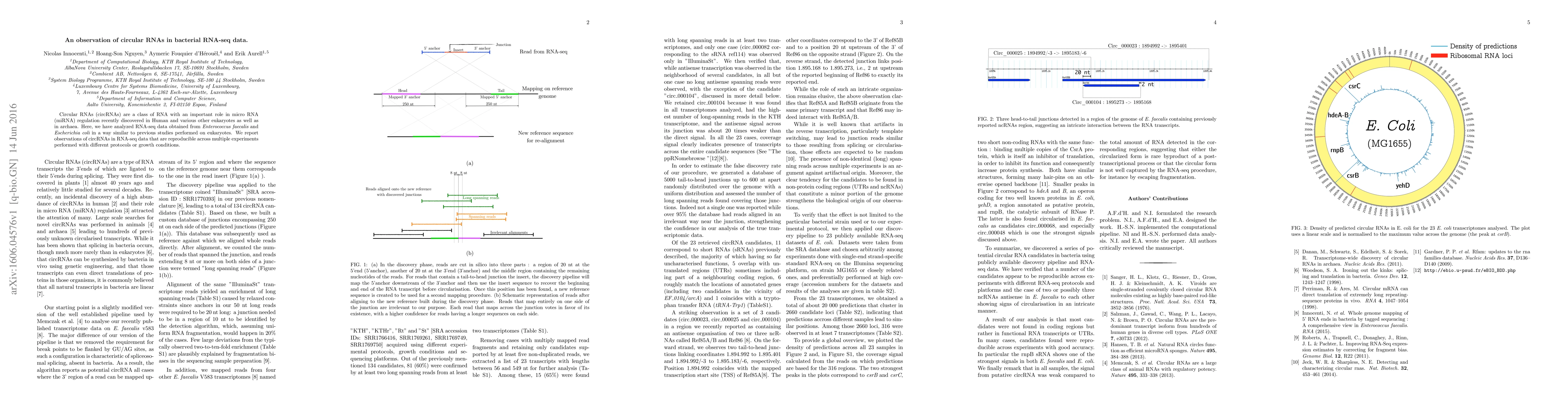 This study observes circular RNAs (circRNAs) in bacterial RNA-seq data from {\it Enterococcus faecalis} and {\it Escherichia coli}, demonstrating their reproducibility across various experiments and protocols. These findings extend the known role of circRNAs beyond eukaryotes to bacteria.