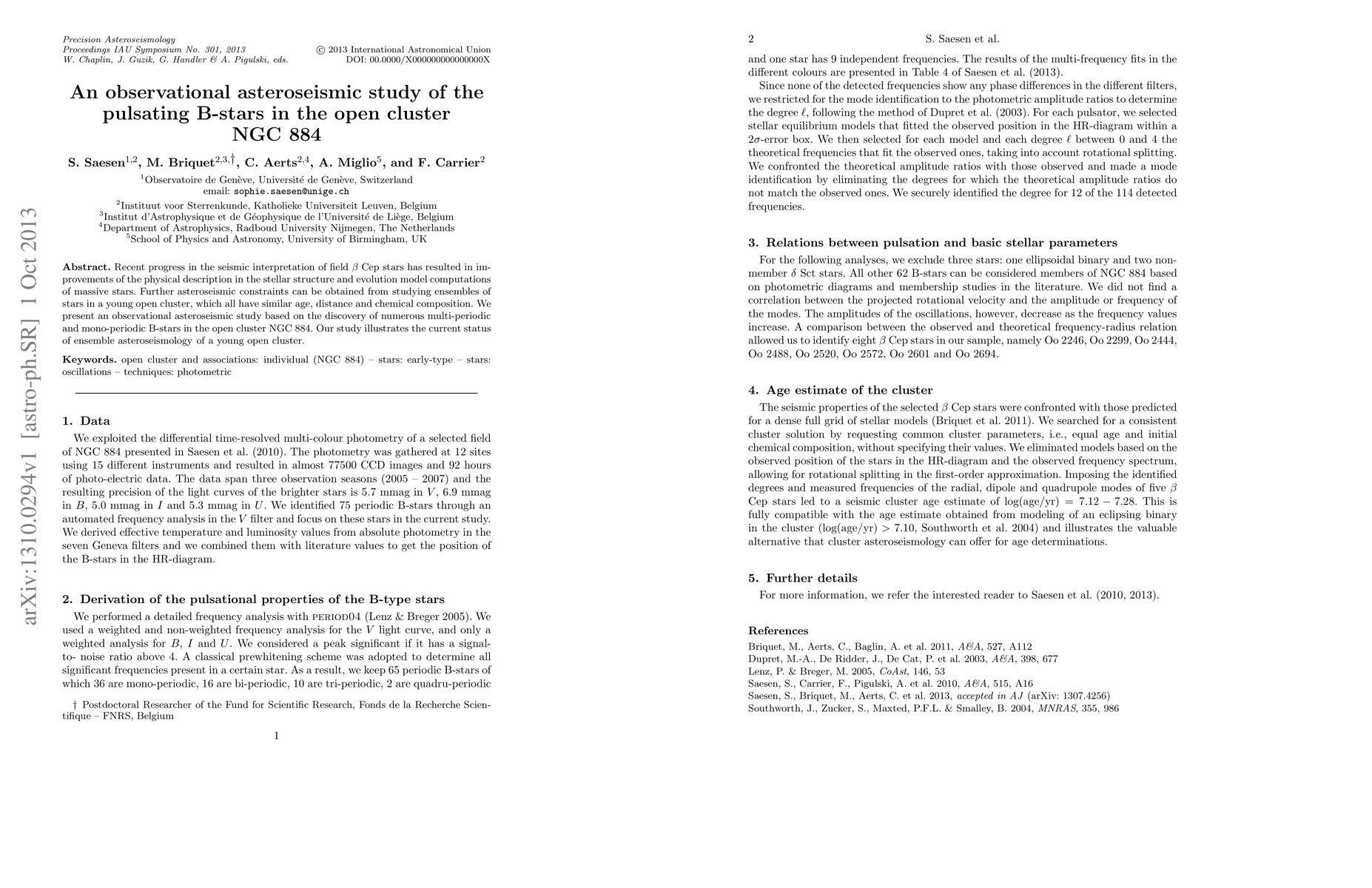 This paper presents an observational asteroseismic study of pulsating B-stars in the open cluster NGC 884, revealing numerous multi-periodic and mono-periodic stars. The findings enhance the understanding of stellar structure and evolution in massive stars through improved asteroseismic constraints.