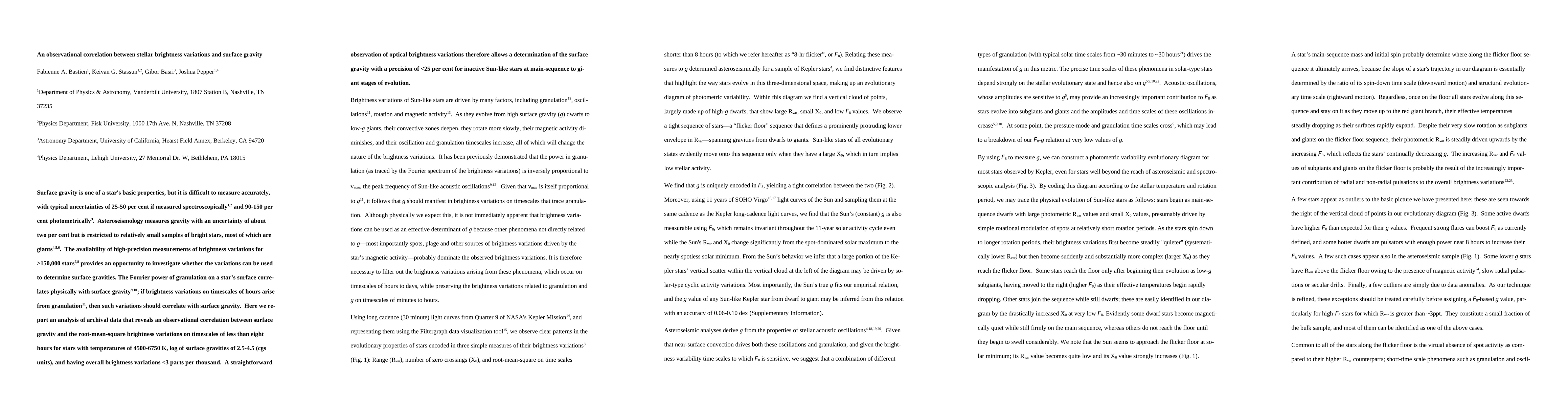 This research identifies an observational correlation between a star's brightness variations and its surface gravity, achieving a precision of <25% for inactive Sun-like stars. The methodology involves analyzing archival data of brightness variations on timescales of less than eight hours for stars within specific temperature and gravity ranges.