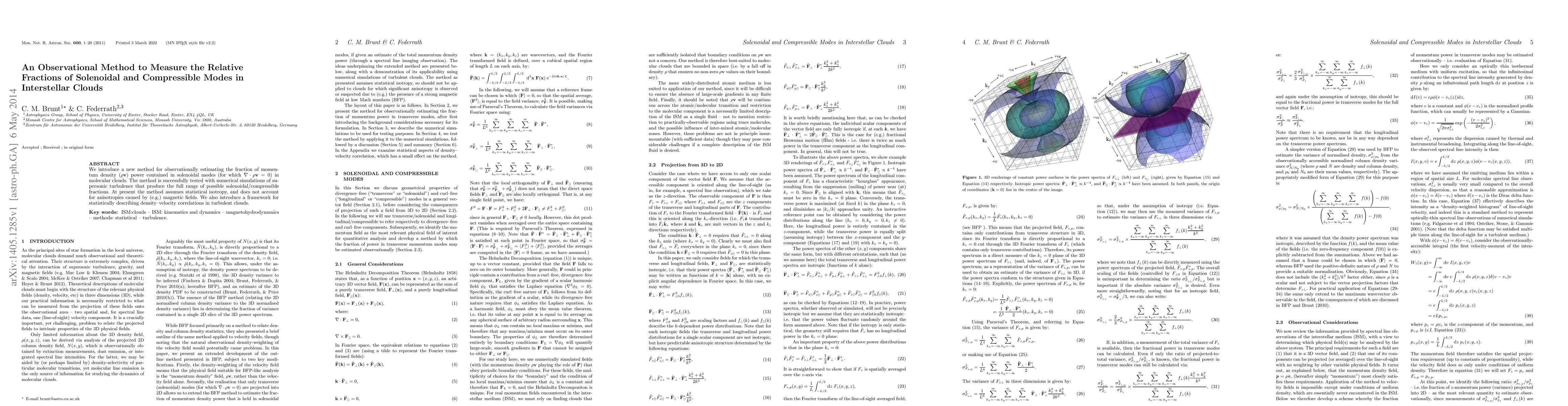 This paper presents a new observational method to estimate the relative fractions of solenoidal and compressible modes in interstellar clouds, validated through simulations of supersonic turbulence. The method currently assumes statistical isotropy, lacking consideration for anisotropies from magnetic fields.