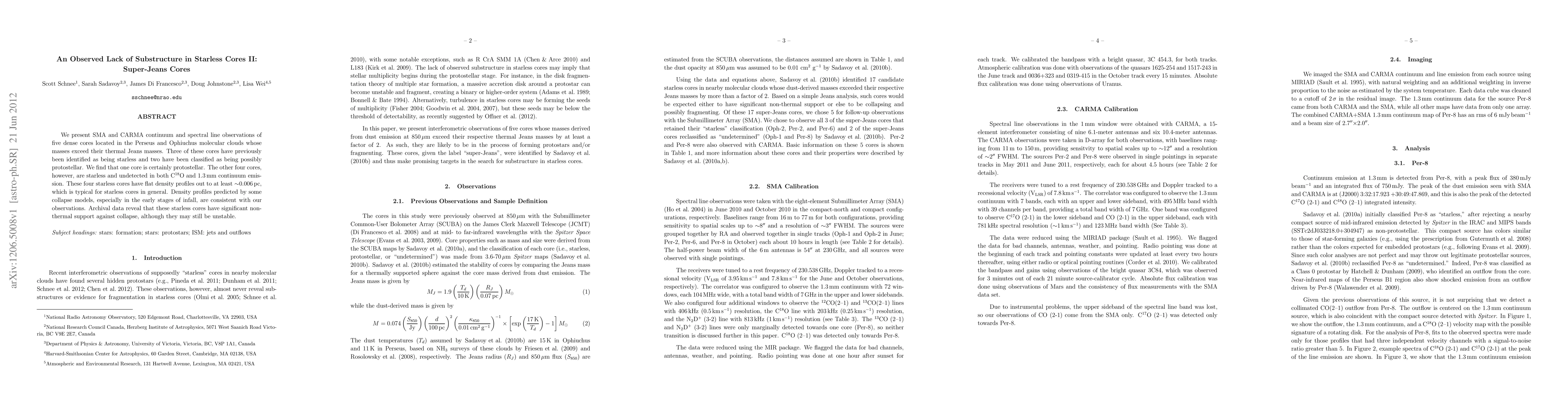 This paper reports on observations of five dense cores in Perseus and Ophiuchus molecular clouds that exceed their thermal Jeans masses, finding that four starless cores lack substructure and show flat density profiles typical of starless cores. These cores exhibit significant non-thermal support, suggesting they may still be gravitationally unstable despite their lack of detectable collapse.