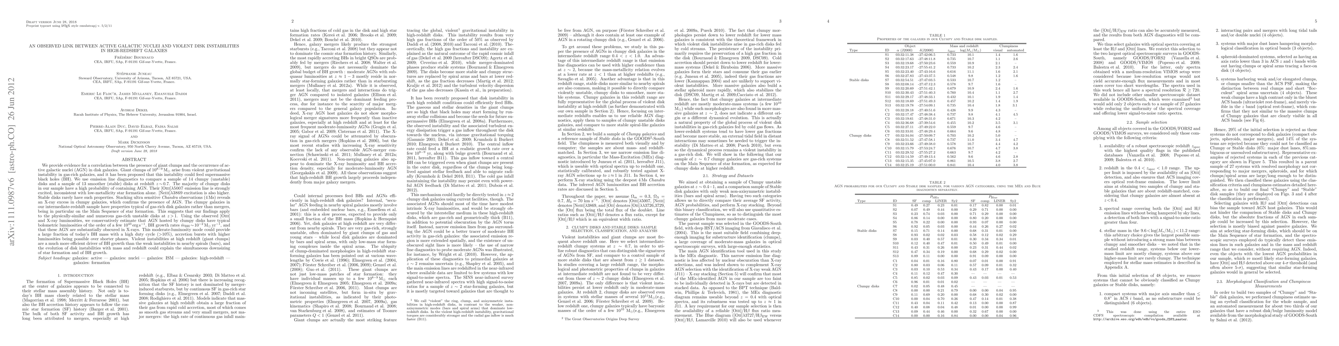 This paper finds a strong correlation between active galactic nuclei (AGN) and violent disk instabilities in high-redshift gas-rich galaxies, suggesting that AGN are likely fueled by these instabilities. The study shows that clumpy, unstable disks are more likely to host AGN than smoother, stable disks, with AGN exhibiting high [OIII] and [NeIII] excitation and X-ray emissions.