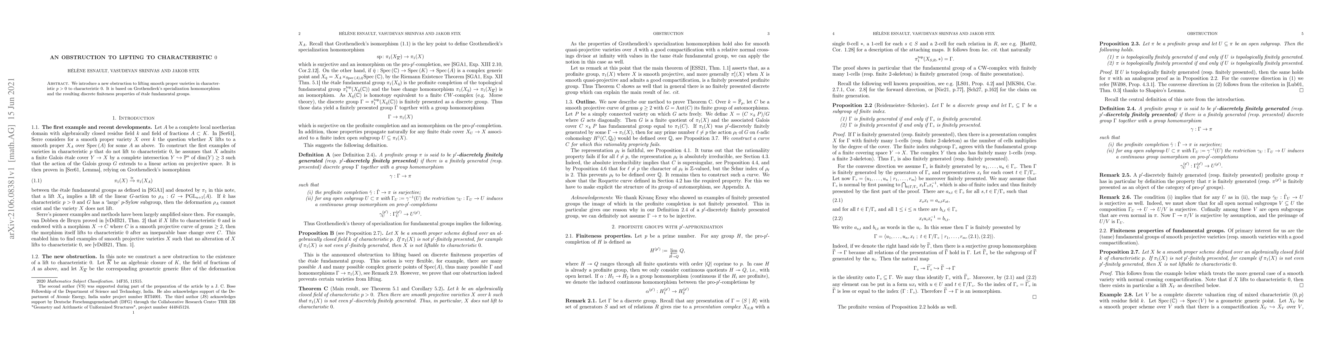 The paper presents a new obstruction to lifting based on the specialization homomorphism and finiteness properties of étale fundamental groups, enriching the theoretical framework for understanding lifting in characteristic zero from positive characteristic.