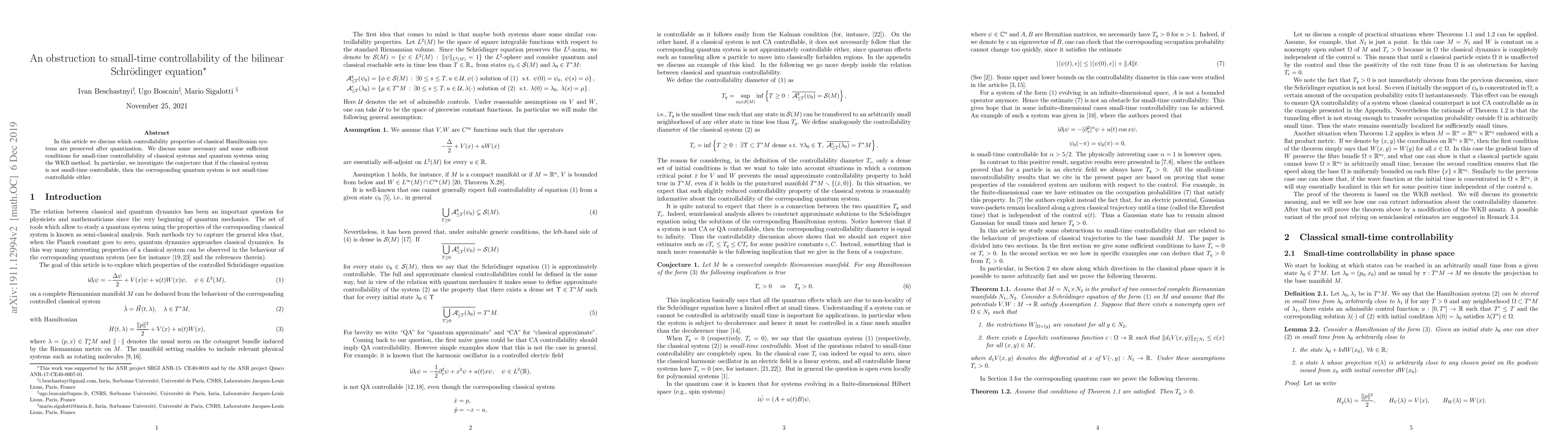 In this article we discuss which controllability properties of classical Hamiltonian systems are preserved after quantization. We discuss some necessary and some sufficient conditions for small-time controllability of classical systems and quantum systems using the WKB method. In particular, we investigate the conjecture that if the classical system is not small-time controllable, then the corresponding quantum system is not small-time controllable either.