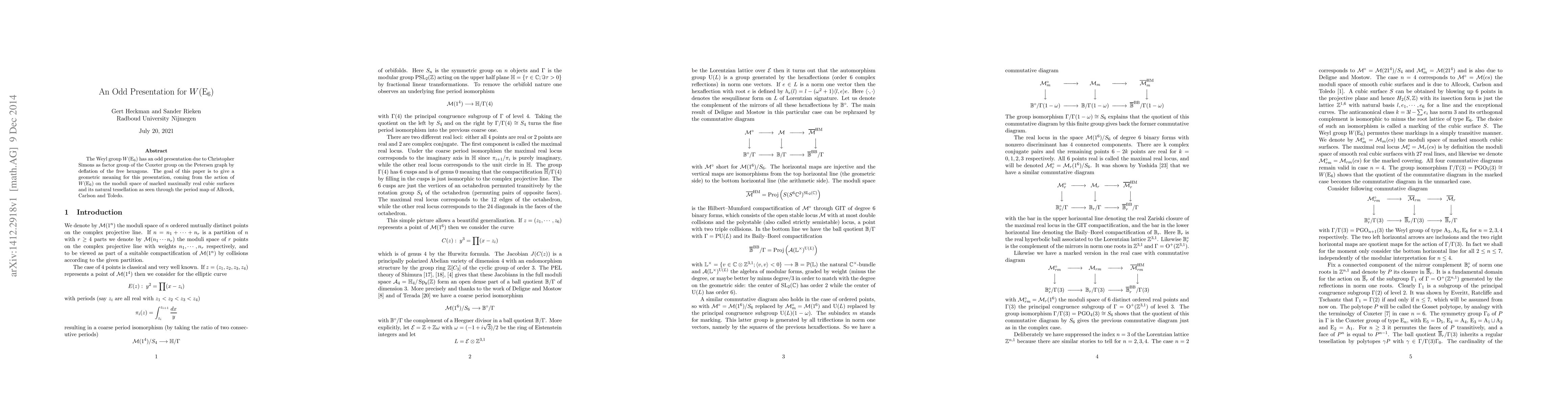 The Weyl group $W(\mathrm{E}_6)$ has an odd presentation due to Christopher Simons as factor group of the Coxeter group on the Petersen graph by deflation of the free hexagons. The goal of this paper is to give a geometric meaning for this presentation, coming from the action of $W(\mathrm{E}_6)$ on the moduli space of marked maximally real cubic surfaces and its natural tessellation as seen through the period map of Allcock, Carlson and Toledo.
