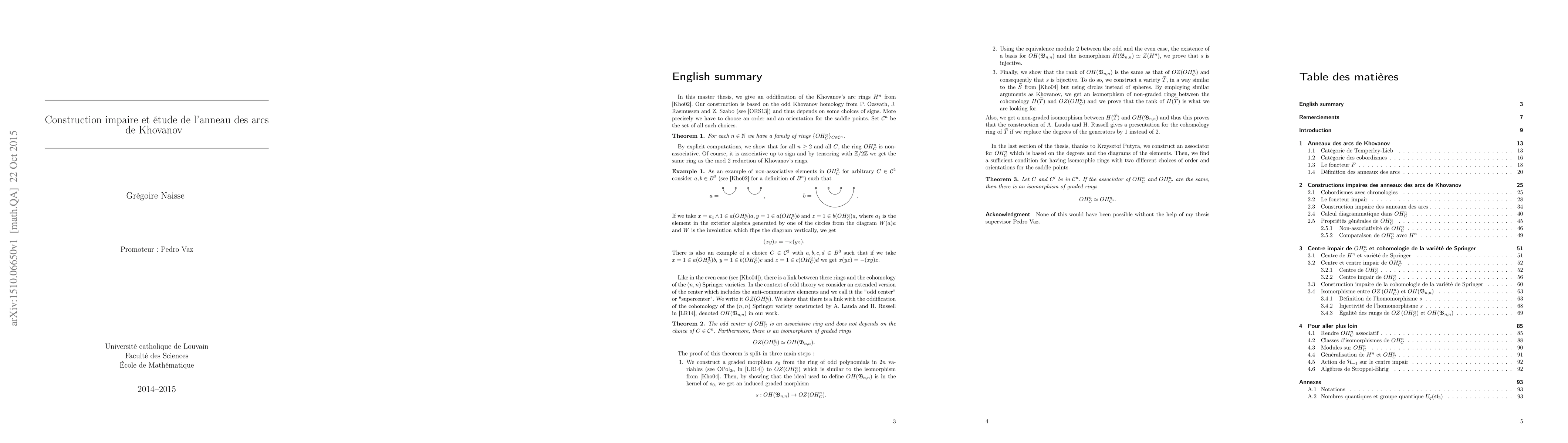 In this master thesis we construct an oddification of the rings $H^n$ from arXiv:math/0103190 using the functor from arXiv:0710.4300 . This leads to a collection of non-associative rings $OH^n_C$ where $C$ represent some choices of signs. Extending the center up to anti-commutative elements, we get a ring $OZ(OH^n_C)$ which is isomorphic to the oddification of the ring cohomology of the $(n,n)$-Springer variety from arXiv:1203.0797 .