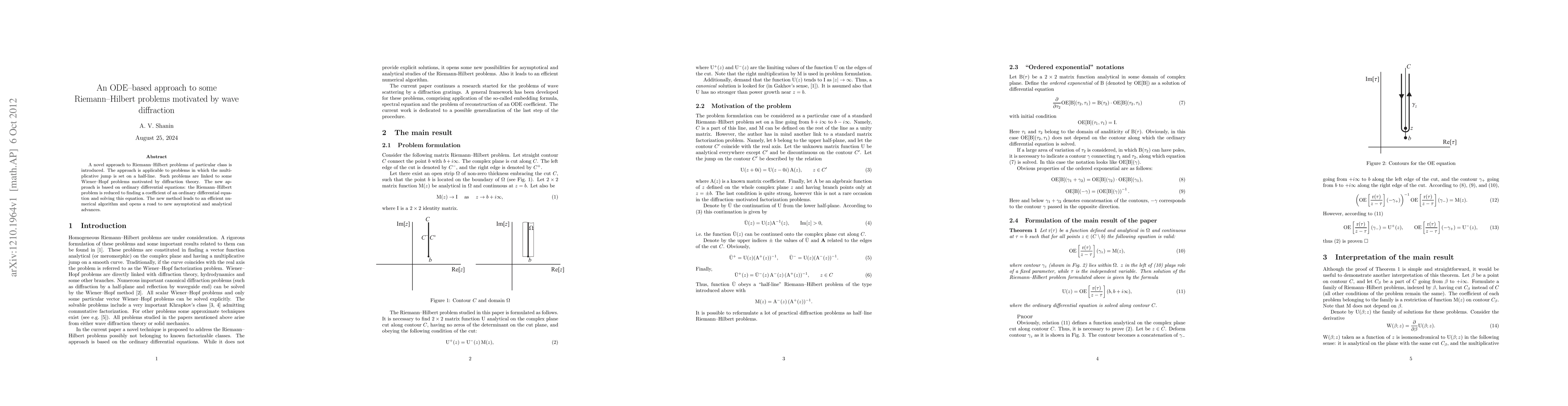 This paper introduces a novel ODE-based method for solving a specific class of Riemann-Hilbert problems related to wave diffraction. The approach leverages ordinary differential equations to reduce the problem to finding a coefficient and solving the equation, leading to efficient numerical algorithms and potential analytical advances.