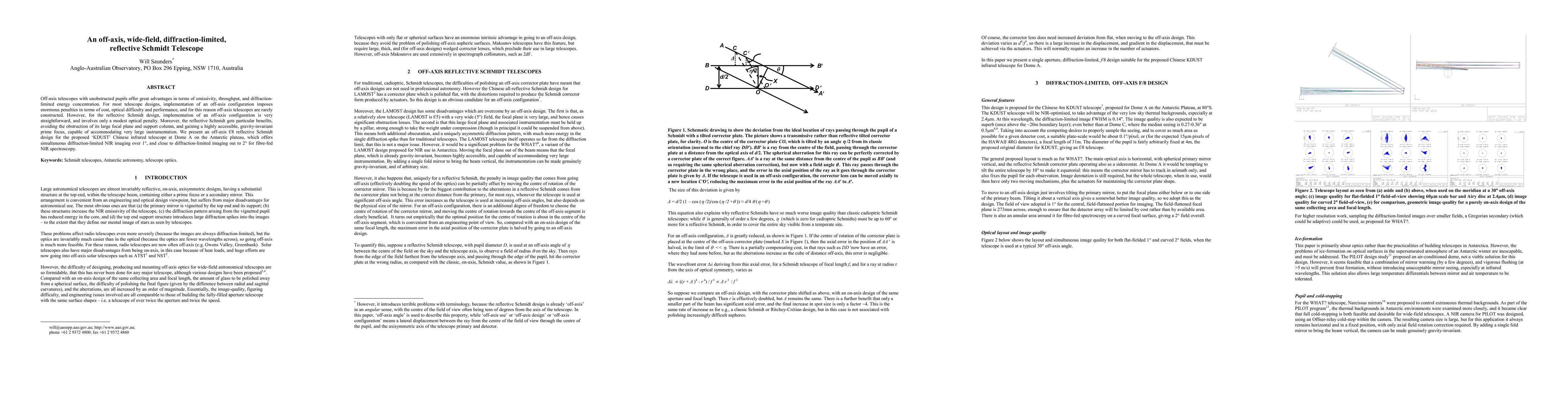 Off-axis telescopes with unobstructed pupils offer great advantages in terms of emissivity, throughput, and diffractionlimited energy concentration. For most telescope designs, implementation of an off-axis configuration imposes enormous penalties in terms of cost, optical difficulty and performance, and for this reason off-axis telescopes are rarely constructed. However, for the reflective Schmidt design, implementation of an off-axis configuration is very straightforward, and involves only a modest optical penalty. Moreover, the reflective Schmidt gets particular benefits, avoiding the obstruction of its large focal plane and support column, and gaining a highly accessible, gravity-invariant prime focus, capable of accommodating very large instrumentation. We present an off-axis f/8 reflective Schmidt design for the proposed 'KDUST' Chinese infrared telescope at Dome A on the Antarctic plateau, which offers simultaneous diffraction-limited NIR imaging over 1 degree, and close to diffraction-limited imaging out to 2 degrees for fibre-fed NIR spectroscopy.