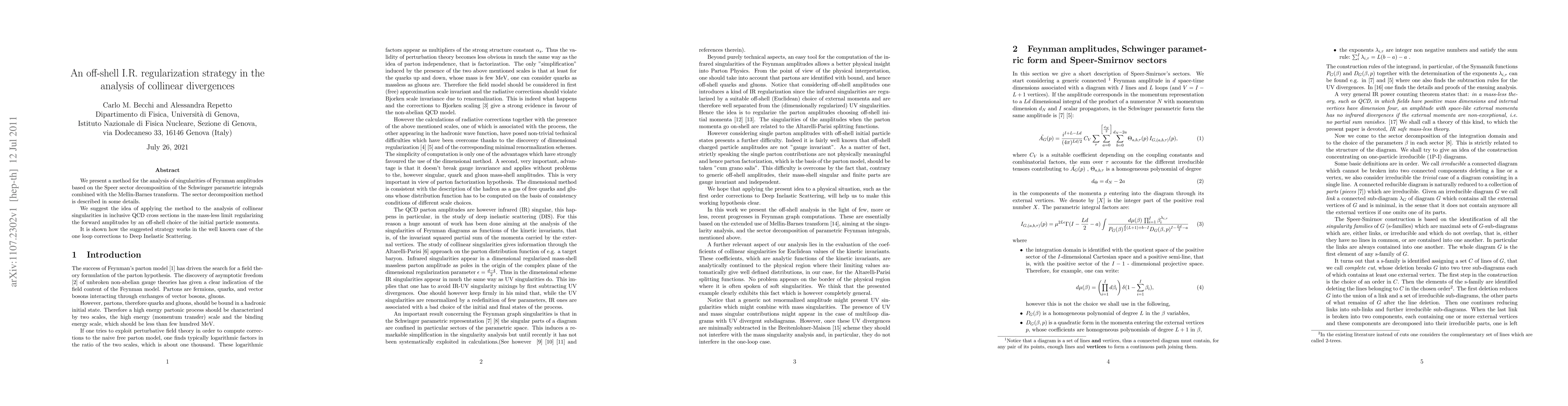 We present a method for the analysis of singularities of Feynman amplitudes based on the Speer sector decomposition of the Schwinger parametric integrals combined with the Mellin-Barnes transform. The sector decomposition method is described in some details. We suggest the idea of applying the method to the analysis of collinear singularities in inclusive QCD cross sections in the mass-less limit regularizing the forward amplitudes by an off-shell choice of the initial particle momenta. It is shown how the suggested strategy works in the well known case of the one loop corrections to Deep Inelastic Scattering.