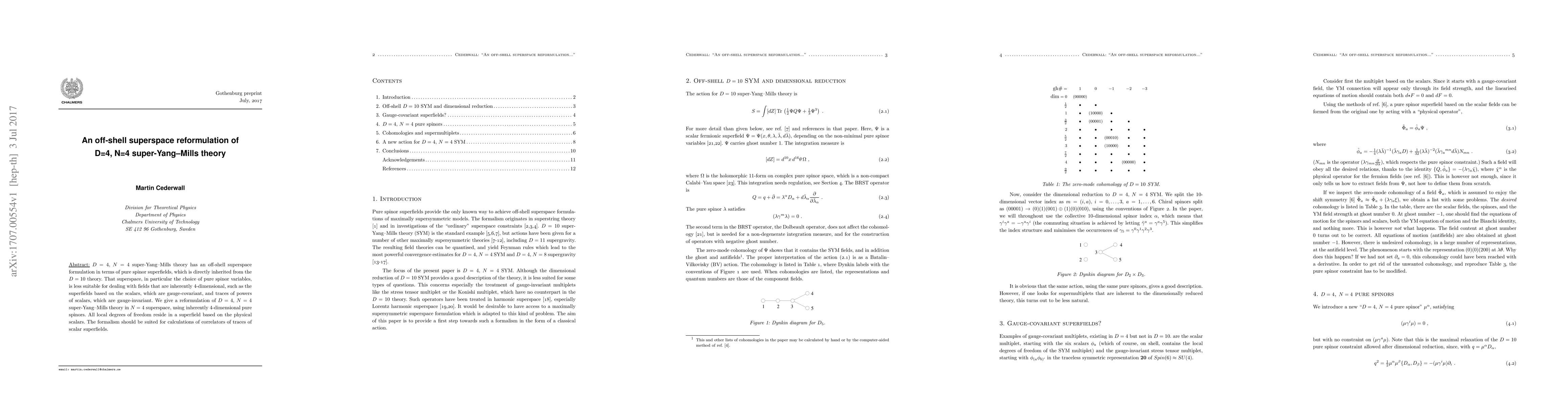 D=4, N=4 super-Yang-Mills theory has an off-shell superspace formulation in terms of pure spinor superfields, which is directly inherited from the D=10 theory. That superspace, in particular the choice of pure spinor variables, is less suitable for dealing with fields that are inherently 4-dimensional, such as the superfields based on the scalars, which are gauge-covariant, and traces of powers of scalars, which are gauge-invariant. We give a reformulation of D=4, N=4 super-Yang-Mills theory in N=4 superspace, using inherently 4-dimensional pure spinors. All local degrees of freedom reside in a superfield based on the physical scalars. The formalism should be suited for calculations of correlators of traces of scalar superfields.