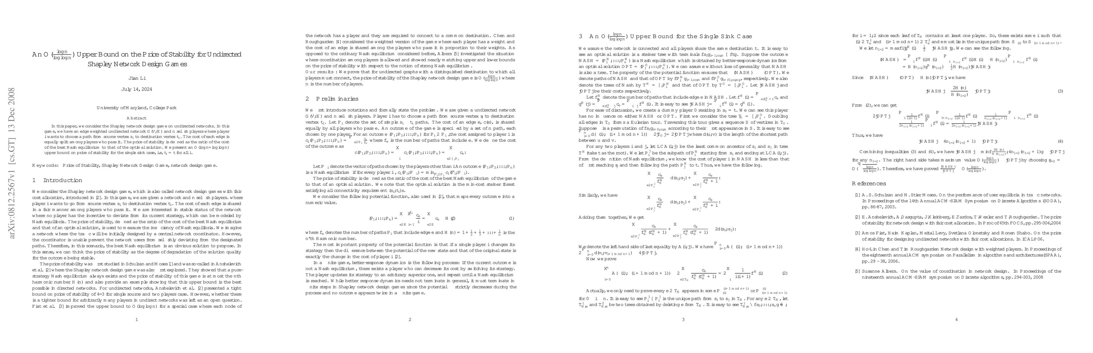 This research establishes an upper bound of O(log n / log log n) for the price of stability in Shapley network design games on undirected networks with a single sink. The study focuses on selfish players choosing paths in a weighted undirected network, where edge costs are shared among users, improving efficiency compared to purely self-interested routing.