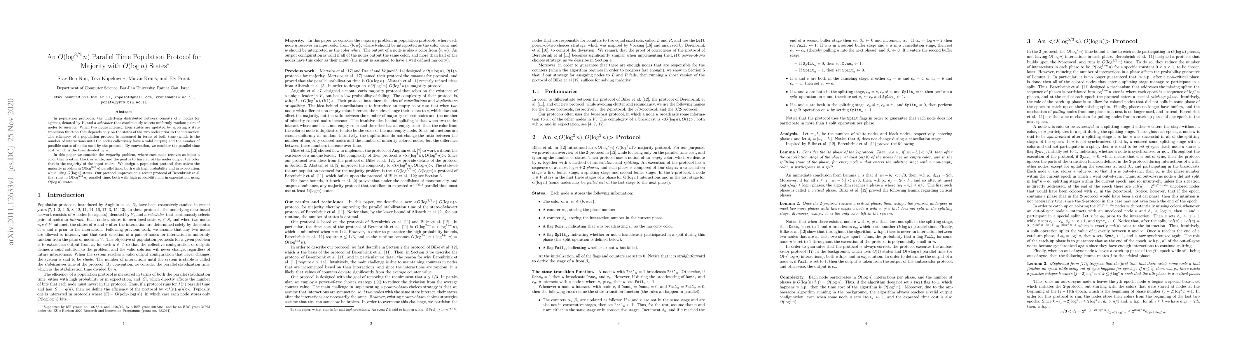 This paper presents a population protocol that solves the majority problem in $O(\log^{3/2}n)$ parallel time with high probability and expectation, using $O(\log n)$ states, improving upon previous protocols with higher time complexity.