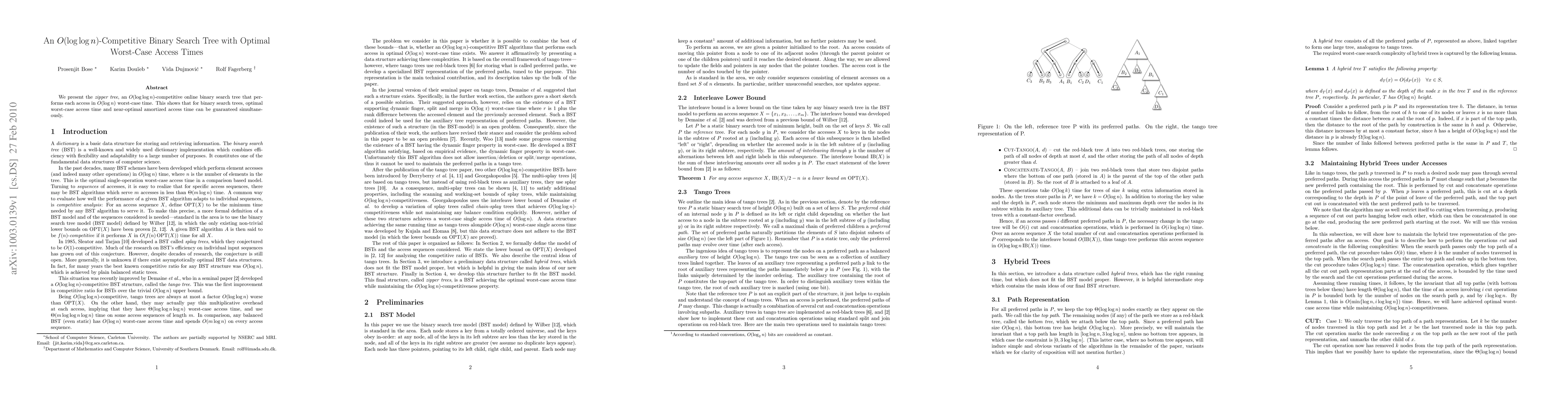 The zipper tree achieves optimal worst-case access times of $O( ext{log log n})$ while maintaining a competitive online binary search tree with amortized access times of $O( ext{log n})$.