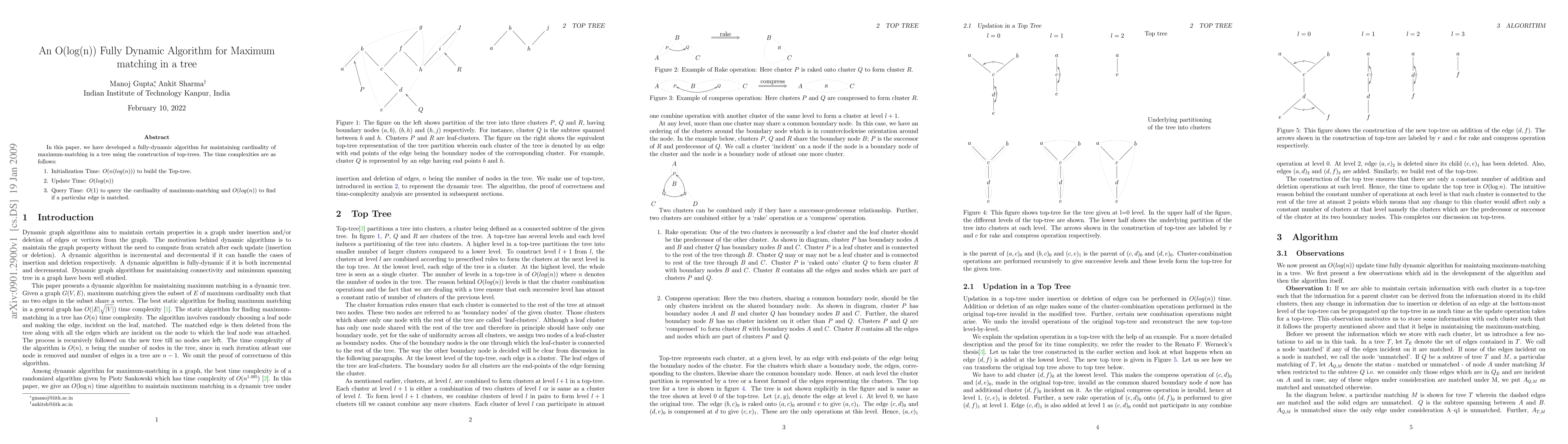 The paper presents a novel O(log(n)) fully dynamic algorithm for maintaining maximum matching in trees using top-trees, along with efficient update and query operations.