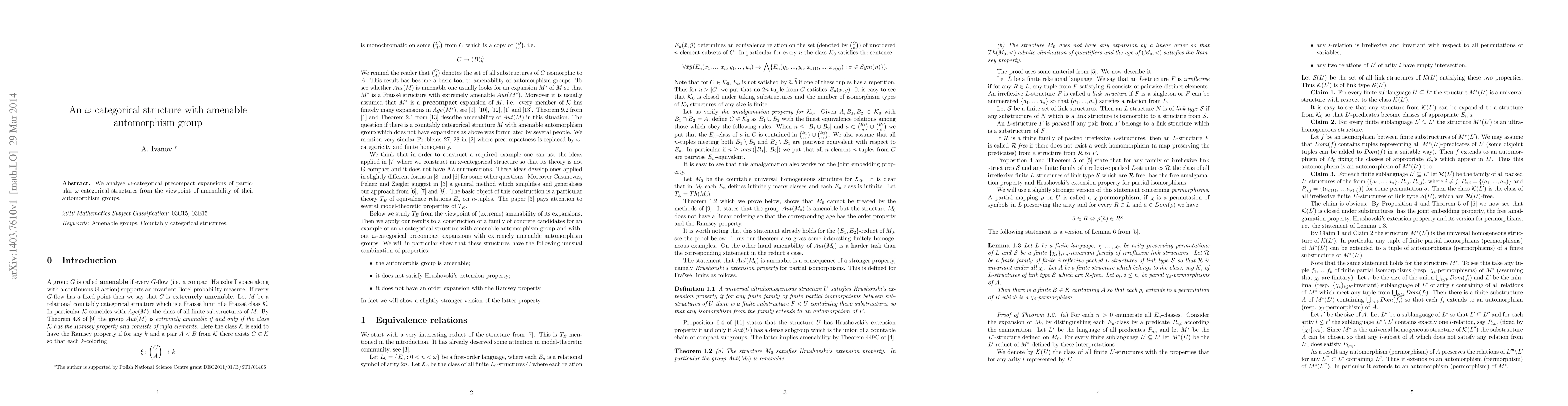 The research analyzes omega-categorical precompact expansions of specific omega-categorical structures, focusing on the amenability of their automorphism groups.