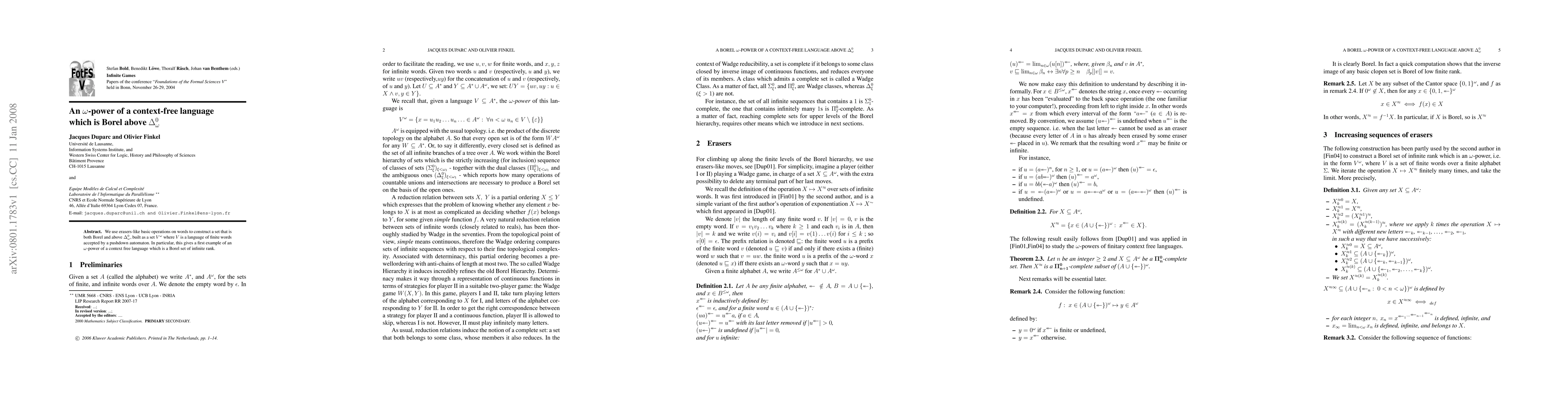 We use erasers-like basic operations on words to construct a set that is both Borel and above Delta^0_omega, built as a set V^\omega where V is a language of finite words accepted by a pushdown automaton. In particular, this gives a first example of an omega-power of a context free language which is a Borel set of infinite rank.