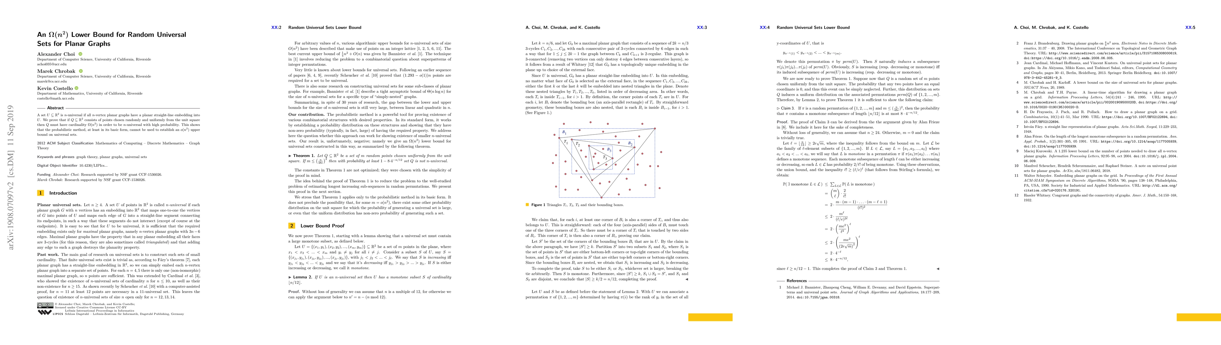 A new study proves that a randomly chosen set of points in 2D space must have at least n^2 points to ensure it can embed any n-vertex planar graph, challenging the use of probabilistic methods to find smaller universal sets.