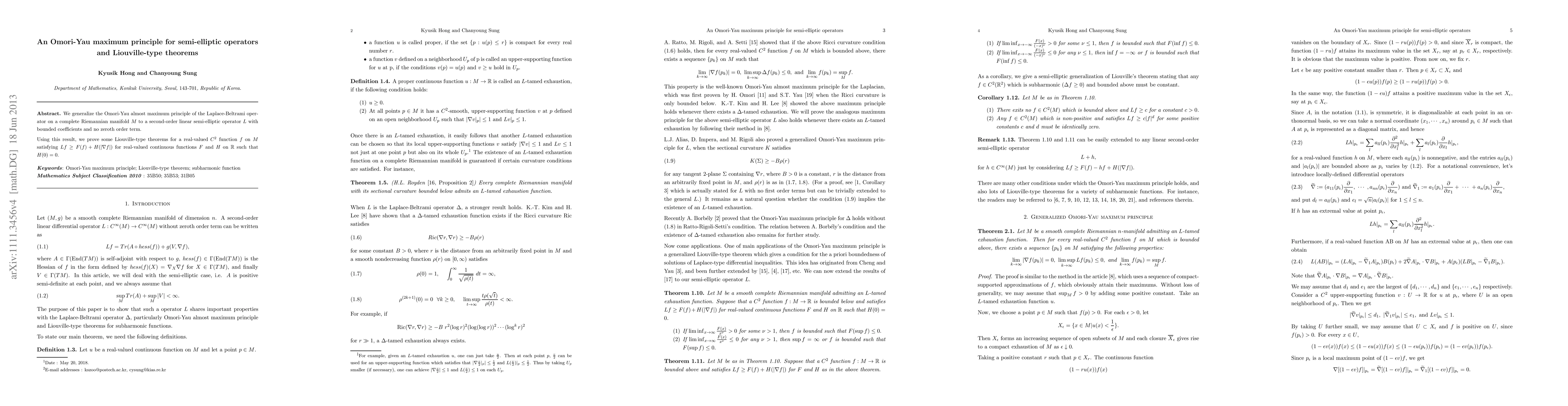 This paper generalizes the Omori-Yau maximum principle to semi-elliptic operators and uses it to establish Liouville-type theorems for functions satisfying certain differential inequalities on a Riemannian manifold.