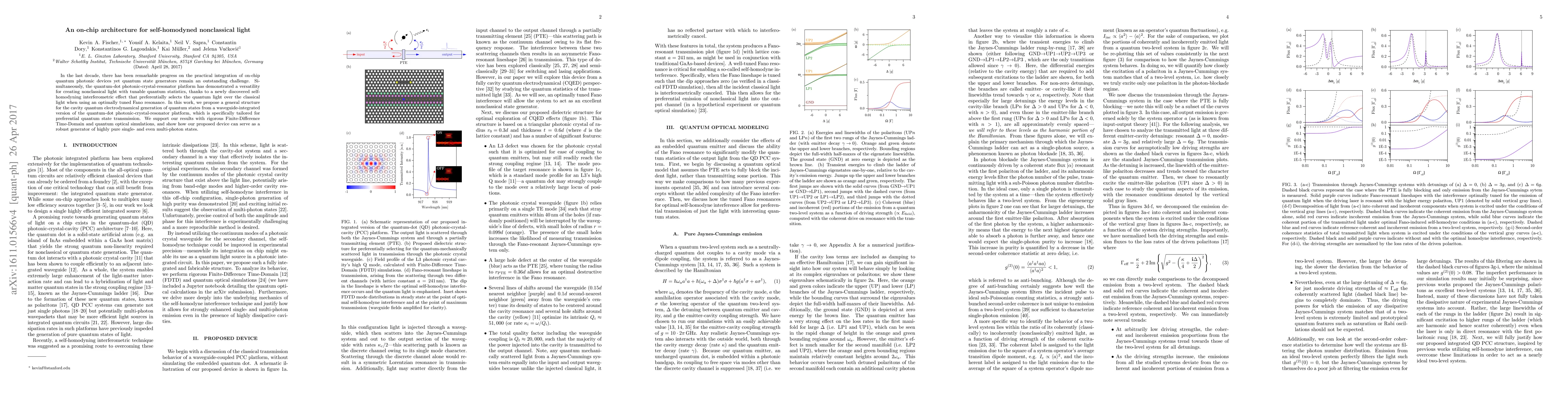 This research proposes an on-chip architecture for generating self-homodyned nonclassical light using a waveguide-integrated quantum-dot photonic-crystal-resonator platform. The design preferentially transmits quantum states over classical ones, demonstrated through simulations, and can produce highly pure single- and multi-photon states.