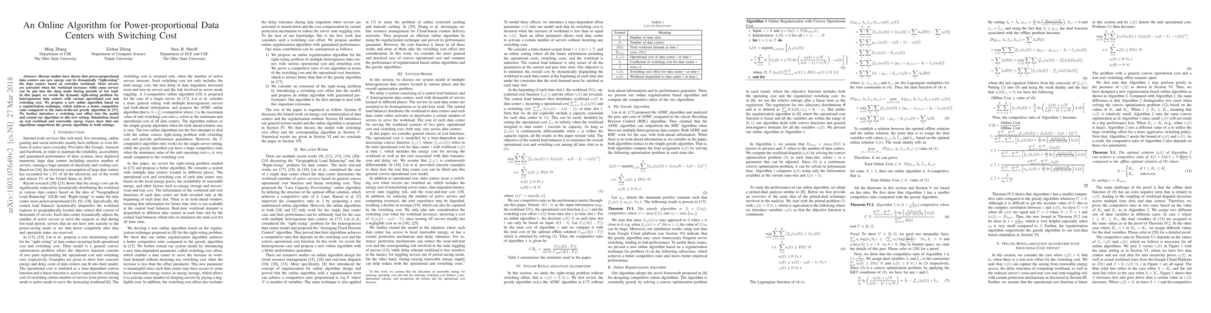 This paper proposes an online algorithm for power-proportional data centers that dynamically adjusts server usage based on real-time workload, incorporating switching costs. The new algorithm, based on regularization, outperforms existing greedy methods in simulations using real workload data.