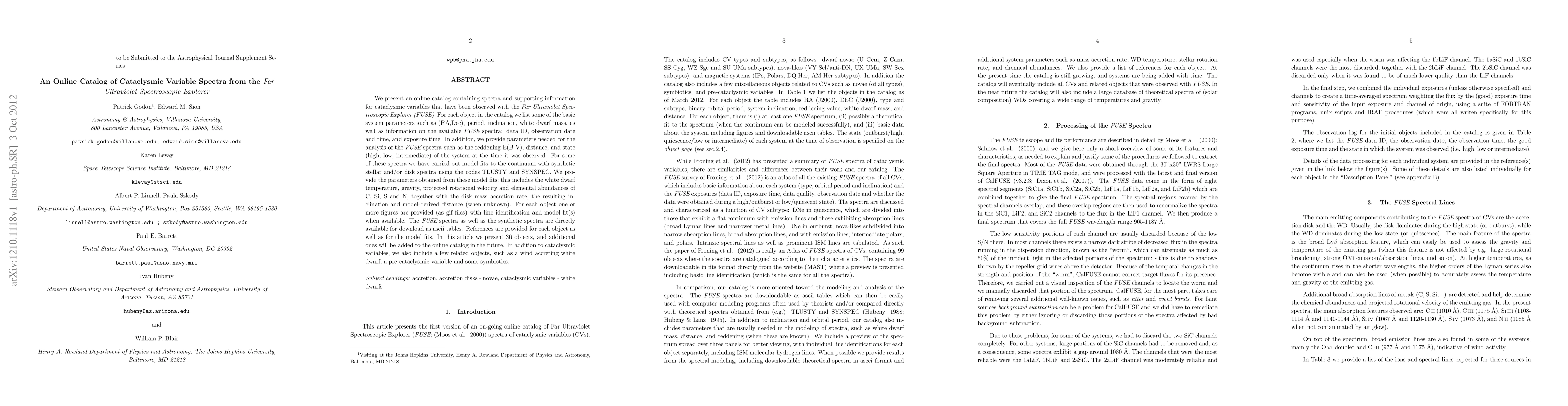 This paper introduces an online catalog of spectra for cataclysmic variables observed with the FUSE satellite, providing detailed parameters and model fits, including white dwarf characteristics and accretion disk properties. The catalog will be expanded with more objects and related types in the future.
