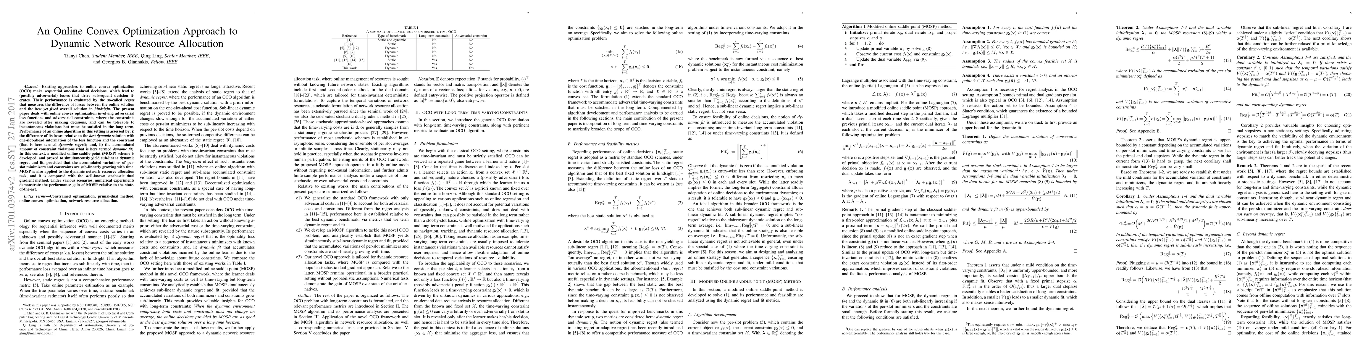 This paper introduces a modified online saddle-point (MOSP) scheme for dynamic network resource allocation, addressing adversarial loss functions and constraints. The MOSP scheme achieves sub-linear dynamic regret and fit, outperforming the stochastic dual gradient method in numerical experiments.