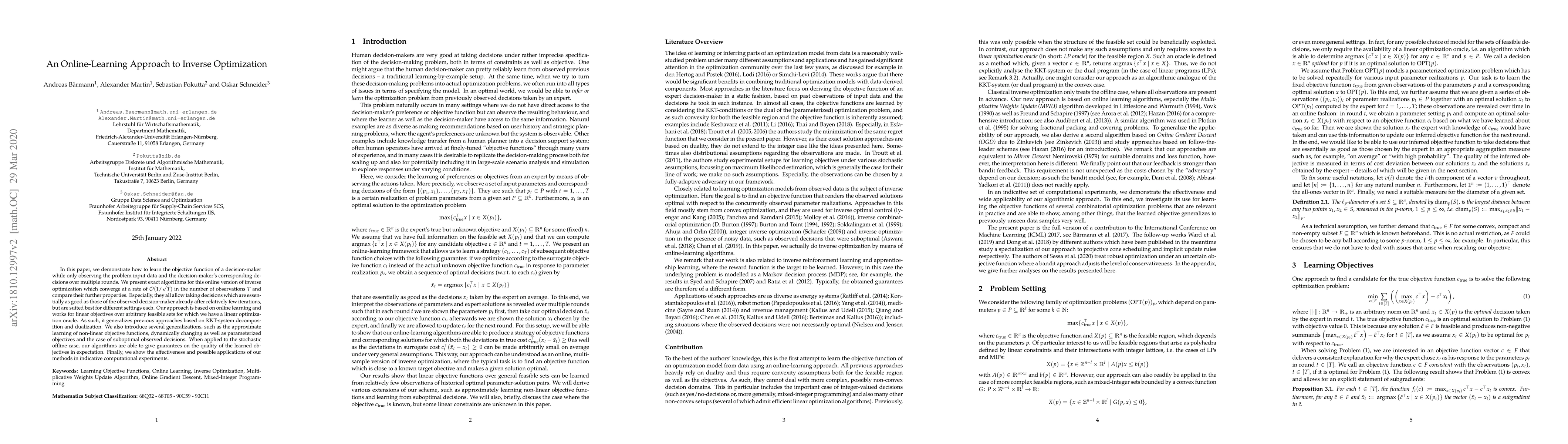 This paper presents online learning algorithms to infer the objective function of a decision-maker from observed input data and decisions, achieving convergence at a rate of $ \mathcal{O}(1/\sqrt{T}) $. The proposed methods generalize previous techniques and are effective for various settings, including non-linear, dynamically changing, and parameterized objectives.
