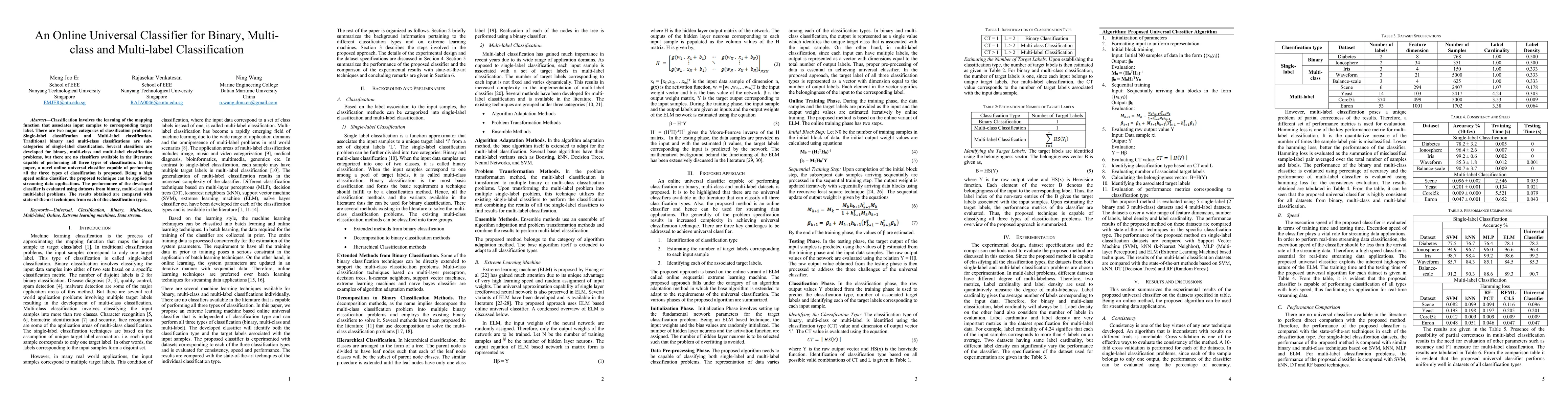 This paper proposes a novel online universal classifier that can handle binary, multi-class, and multi-label classification tasks. The developed high-speed classifier is evaluated against state-of-the-art techniques for each classification type, demonstrating its effectiveness.