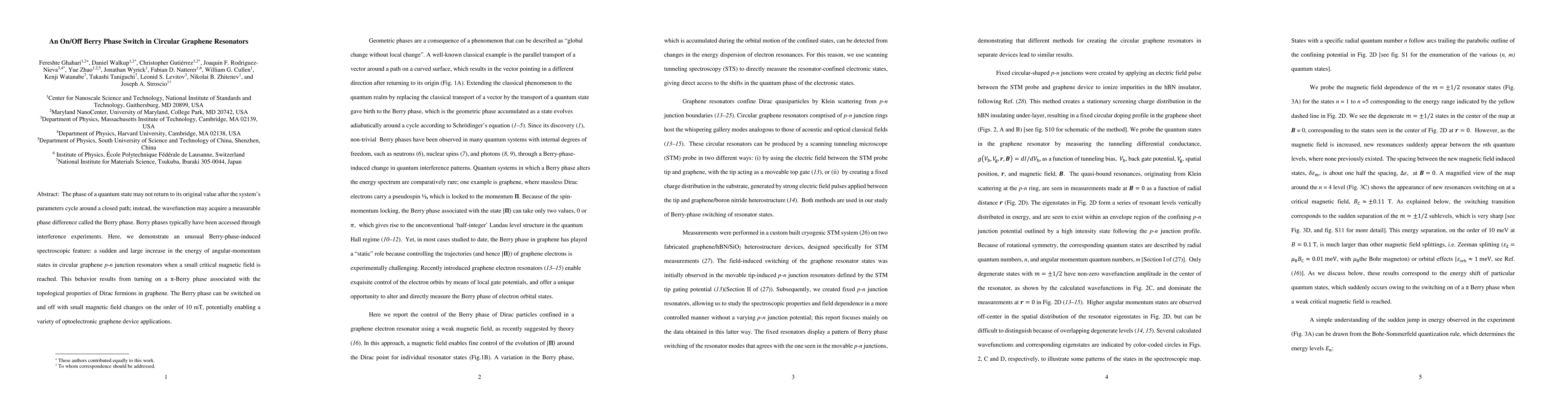 This study reveals a significant increase in angular-momentum state energy in circular graphene p-n junction resonators upon reaching a critical magnetic field, caused by a $\pi$-Berry phase from graphene's topological properties. The Berry phase can be toggled on and off with minimal magnetic field adjustments, suggesting potential for optoelectronic graphene device applications.