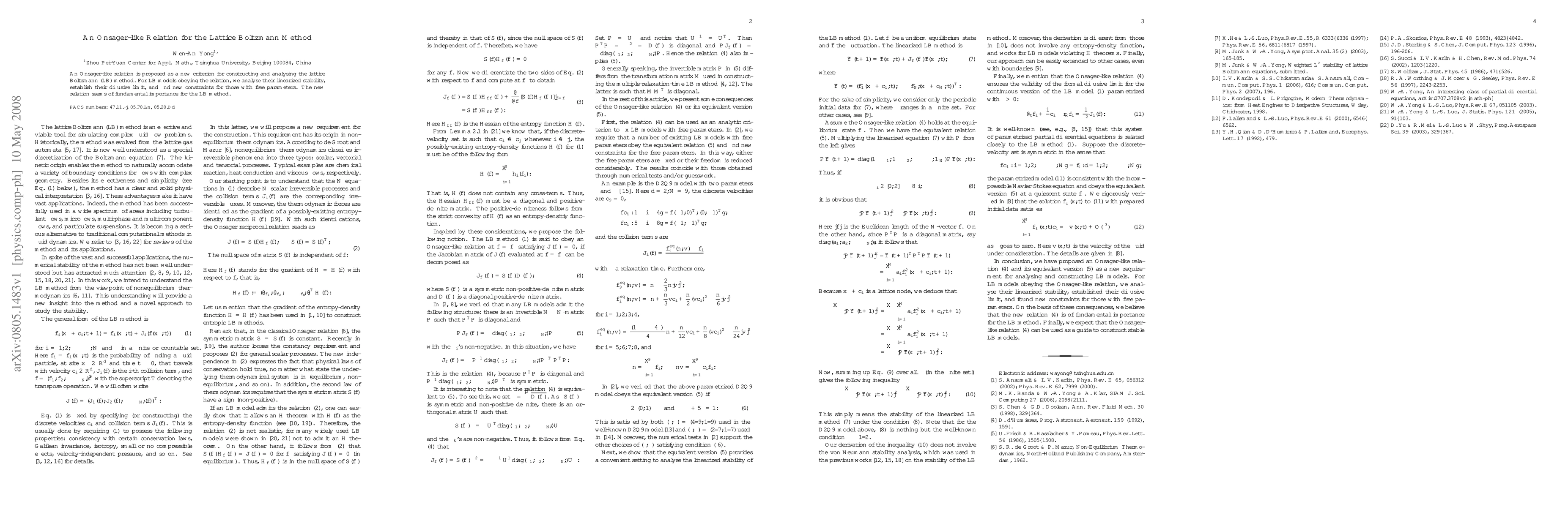 A new Onsager-like relation is proposed for the lattice Boltzmann method, providing a fundamental criterion for constructing and analyzing LB models, with implications for stability analysis, diffusive limits, and constrained free parameters.