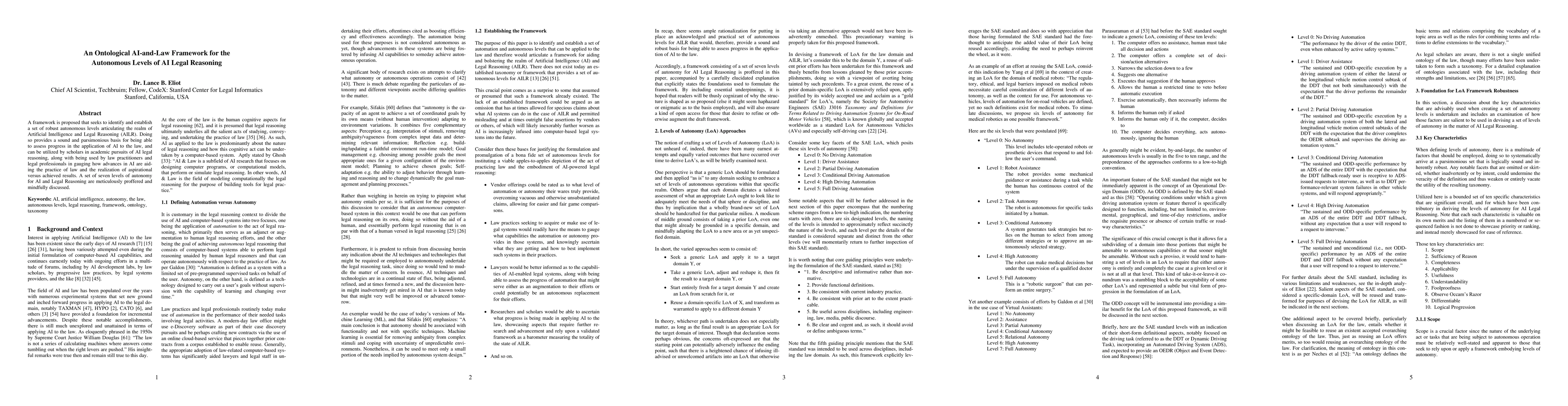 This paper proposes an ontological framework to define seven autonomous levels of AI and Legal Reasoning (AILR), providing a structured basis for evaluating AI's impact on legal practice. It aims to assist both scholars and legal professionals in assessing advancements in AI's application to law.