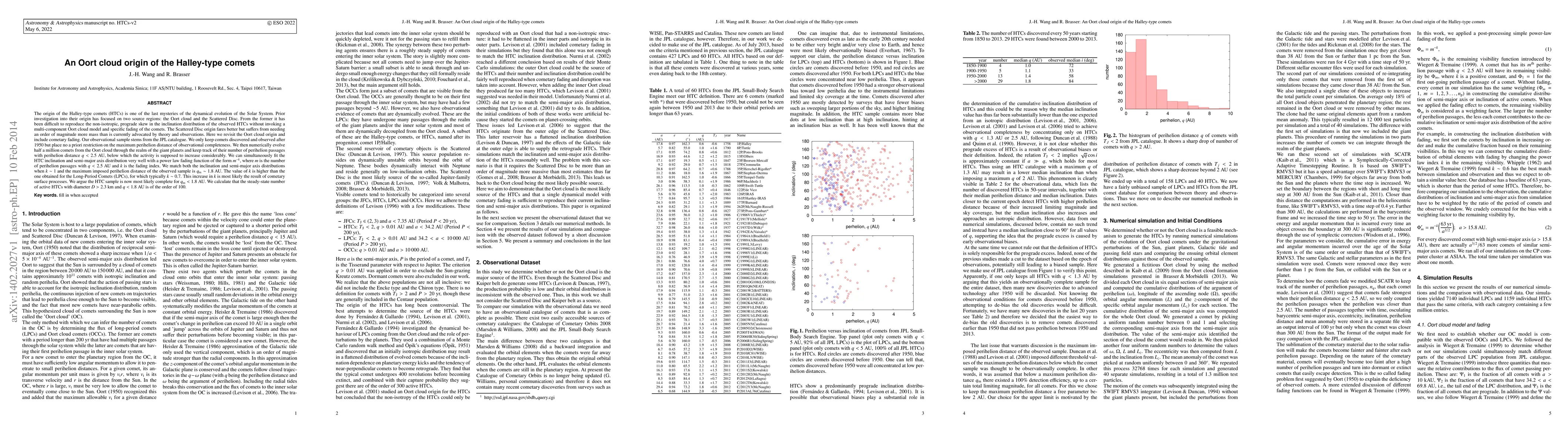 The Oort cloud is likely the origin of Halley-type comets, with a power law fading function explaining their inclination and semi-major axis distributions, suggesting approximately 100 active comets exist with diameters over 2.3km.