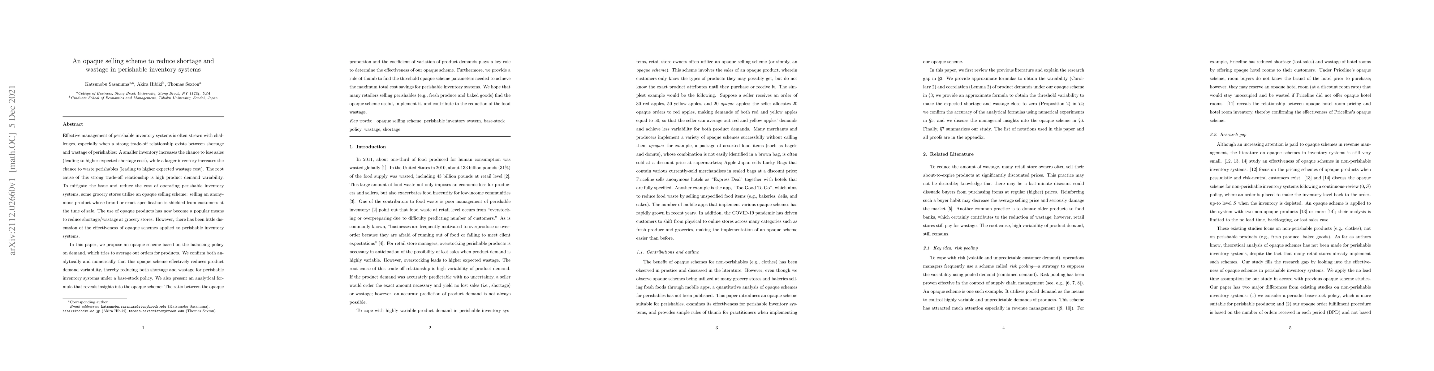This paper proposes an opaque selling scheme to mitigate the trade-off between shortage and wastage in perishable inventory systems, demonstrating its effectiveness through analytical and numerical methods. The scheme balances demand variability, reducing both shortage and wastage, and provides a formula and rule of thumb for optimal implementation.