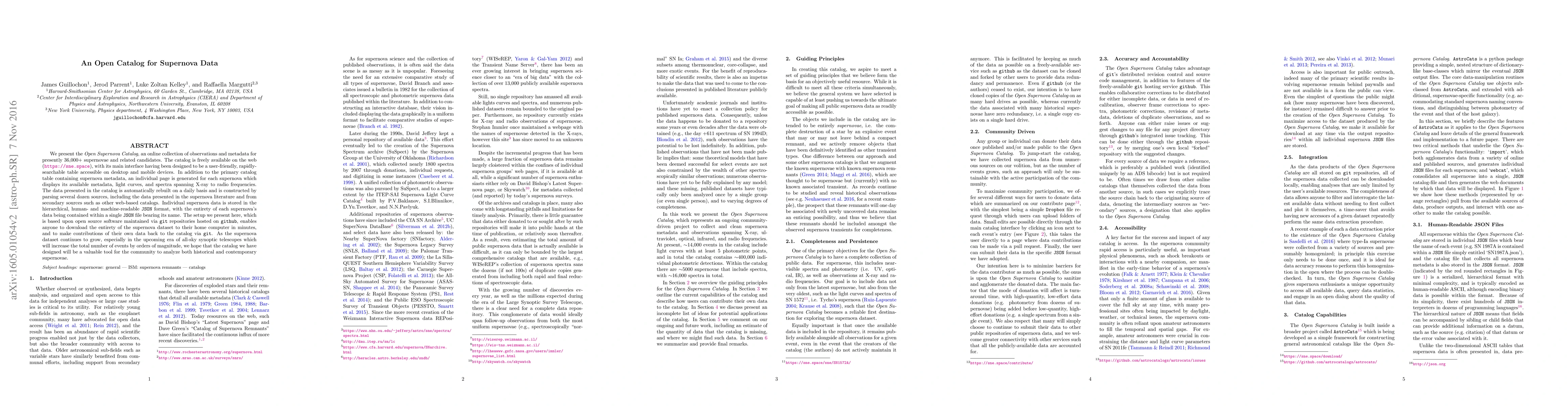 We present the Open Supernova Catalog, an online collection of observations and metadata for presently 36,000+ supernovae and related candidates. The catalog is freely available on the web (https://sne.space), with its main interface having been designed to be a user-friendly, rapidly-searchable table accessible on desktop and mobile devices. In addition to the primary catalog table containing supernova metadata, an individual page is generated for each supernova which displays its available metadata, light curves, and spectra spanning X-ray to radio frequencies. The data presented in the catalog is automatically rebuilt on a daily basis and is constructed by parsing several dozen sources, including the data presented in the supernova literature and from secondary sources such as other web-based catalogs. Individual supernova data is stored in the hierarchical, human- and machine-readable JSON format, with the entirety of each supernova's data being contained within a single JSON file bearing its name. The setup we present here, which is based upon open source software maintained via git repositories hosted on github, enables anyone to download the entirety of the supernova dataset to their home computer in minutes, and to make contributions of their own data back to the catalog via git. As the supernova dataset continues to grow, especially in the upcoming era of all-sky synoptic telescopes which will increase the total number of events by orders of magnitude, we hope that the catalog we have designed will be a valuable tool for the community to analyze both historical and contemporary supernovae.