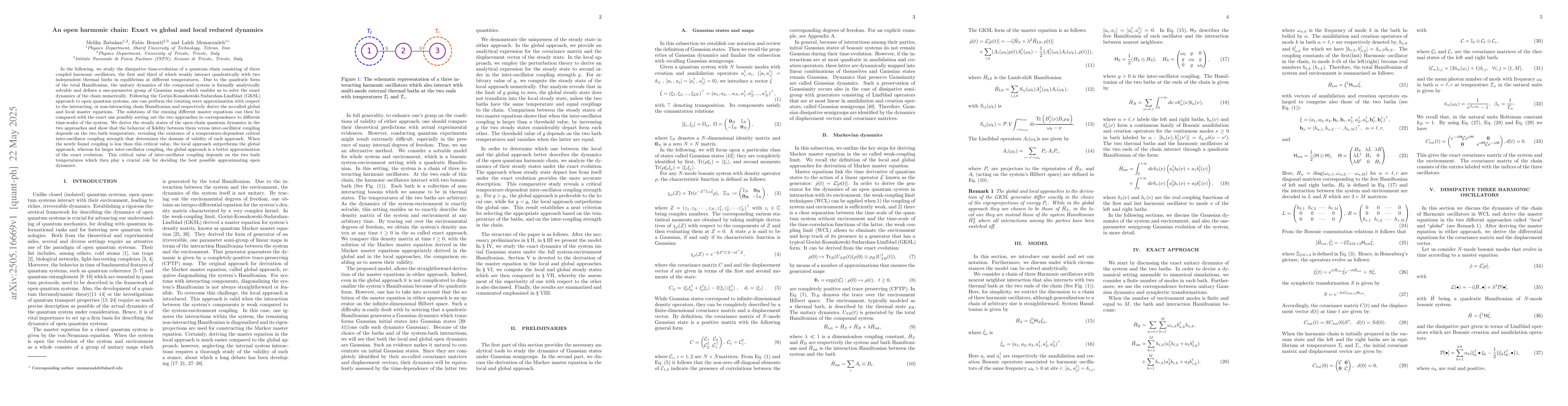 The paper presents a detailed comparison of exact dynamics and reduced master equations (global and local) for an open quantum harmonic chain, identifying a temperature-dependent critical coupling strength that determines the validity of each approximation method.