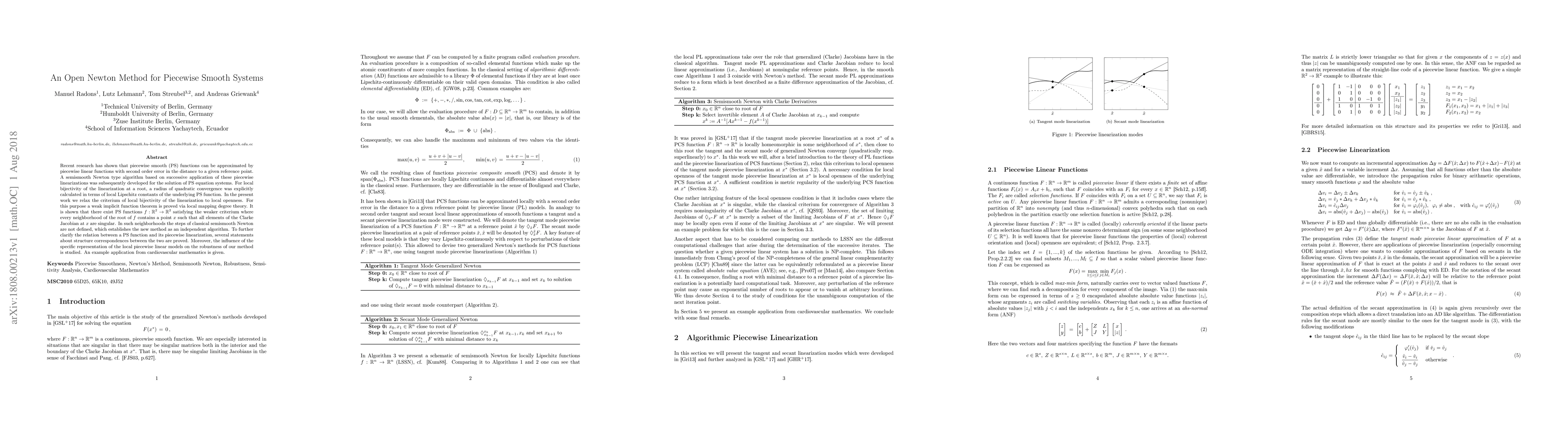 Recent research has shown that piecewise smooth (PS) functions can be approximated by piecewise linear functions with second order error in the distance to a given reference point. A semismooth Newton type algorithm based on successive application of these piecewise linearizations was subsequently developed for the solution of PS equation systems. For local bijectivity of the linearization at a root, a radius of quadratic convergence was explicitly calculated in terms of local Lipschitz constants of the underlying PS function. In the present work we relax the criterium of local bijectivity of the linearization to local openness. For this purpose a weak implicit function theorem is proved via local mapping degree theory. It is shown that there exist PS functions $f:\mathbb R^2\rightarrow\mathbb R^2$ satisfying the weaker criterium where every neighborhood of the root of $f$ contains a point $x$ such that all elements of the Clarke Jacobian at $x$ are singular. In such neighborhoods the steps of classical semismooth Newton are not defined, which establishes the new method as an independent algorithm. To further clarify the relation between a PS function and its piecewise linearization, several statements about structure correspondences between the two are proved. Moreover, the influence of the specific representation of the local piecewise linear models on the robustness of our method is studied. An example application from cardiovascular mathematics is given.