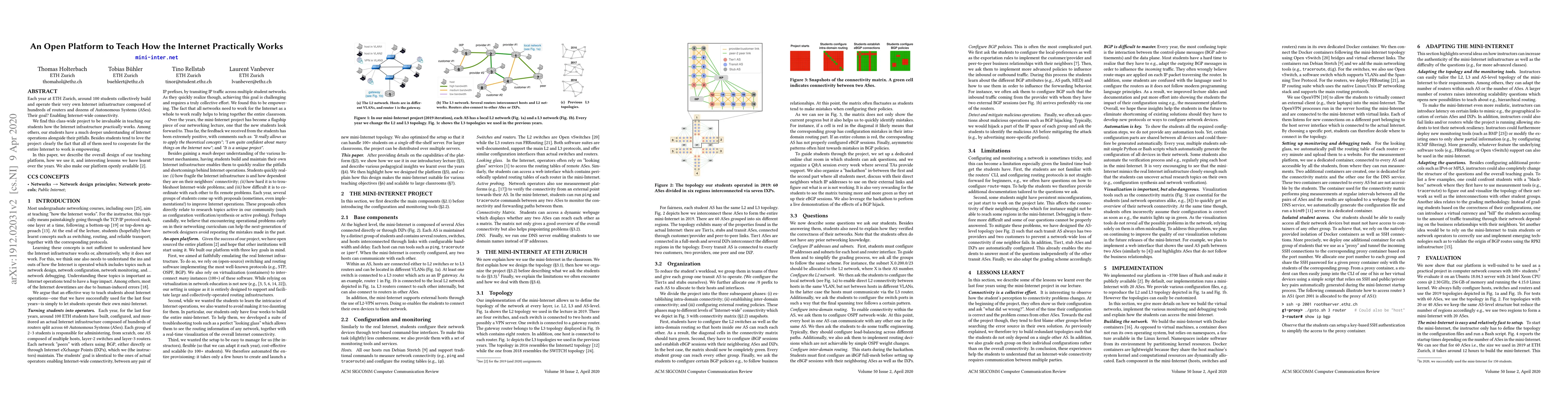 This paper describes a class project at ETH Zurich where students build and operate an Internet infrastructure, gaining practical insights into Internet operations and cooperation. The authors share the platform's design and lessons learned, making the project openly available to benefit others.