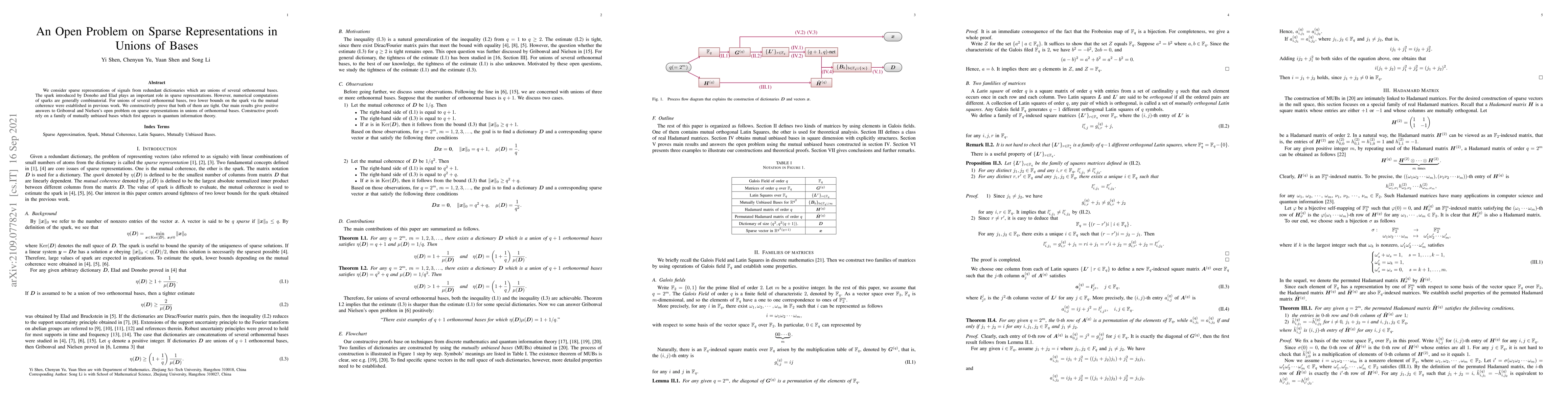 We consider sparse representations of signals from redundant dictionaries which are unions of several orthonormal bases. The spark introduced by Donoho and Elad plays an important role in sparse representations. However, numerical computations of sparks are generally combinatorial. For unions of several orthonormal bases, two lower bounds on the spark via the mutual coherence were established in previous work. We constructively prove that both of them are tight. Our main results give positive answers to Gribonval and Nielsen's open problem on sparse representations in unions of orthonormal bases. Constructive proofs rely on a family of mutually unbiased bases which first appears in quantum information theory.