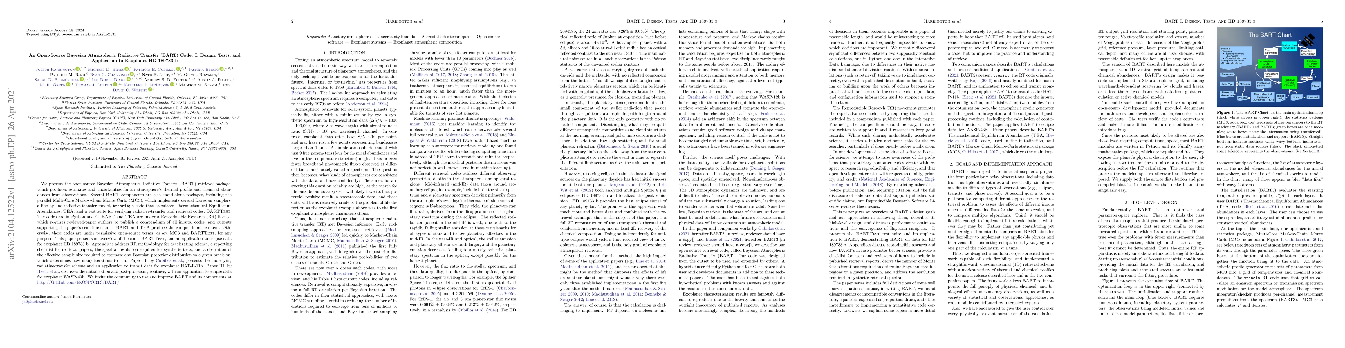 This paper introduces the open-source Bayesian Atmospheric Radiative Transfer (BART) package, which estimates exoplanet atmospheres' thermal profiles and chemical abundances. It includes several stand-alone components and applies BART to eclipse data for exoplanet HD 189733 b, demonstrating its utility.