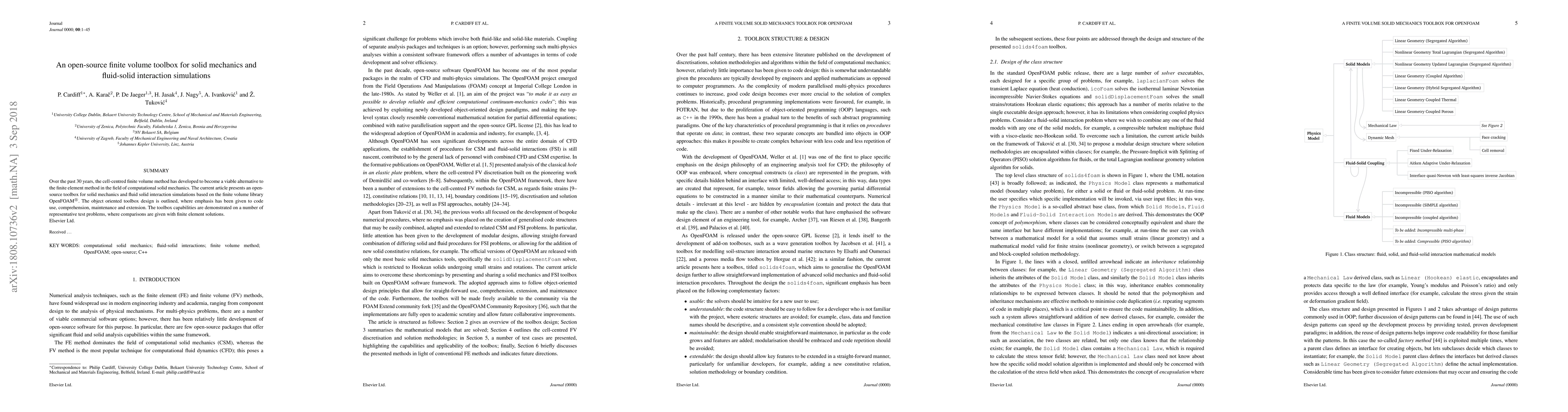 This paper introduces an open-source finite volume toolbox based on OpenFOAM for solid mechanics and fluid-solid interaction simulations, emphasizing code usability, maintenance, and extension. The toolbox is demonstrated through various test problems, with comparisons to finite element solutions.